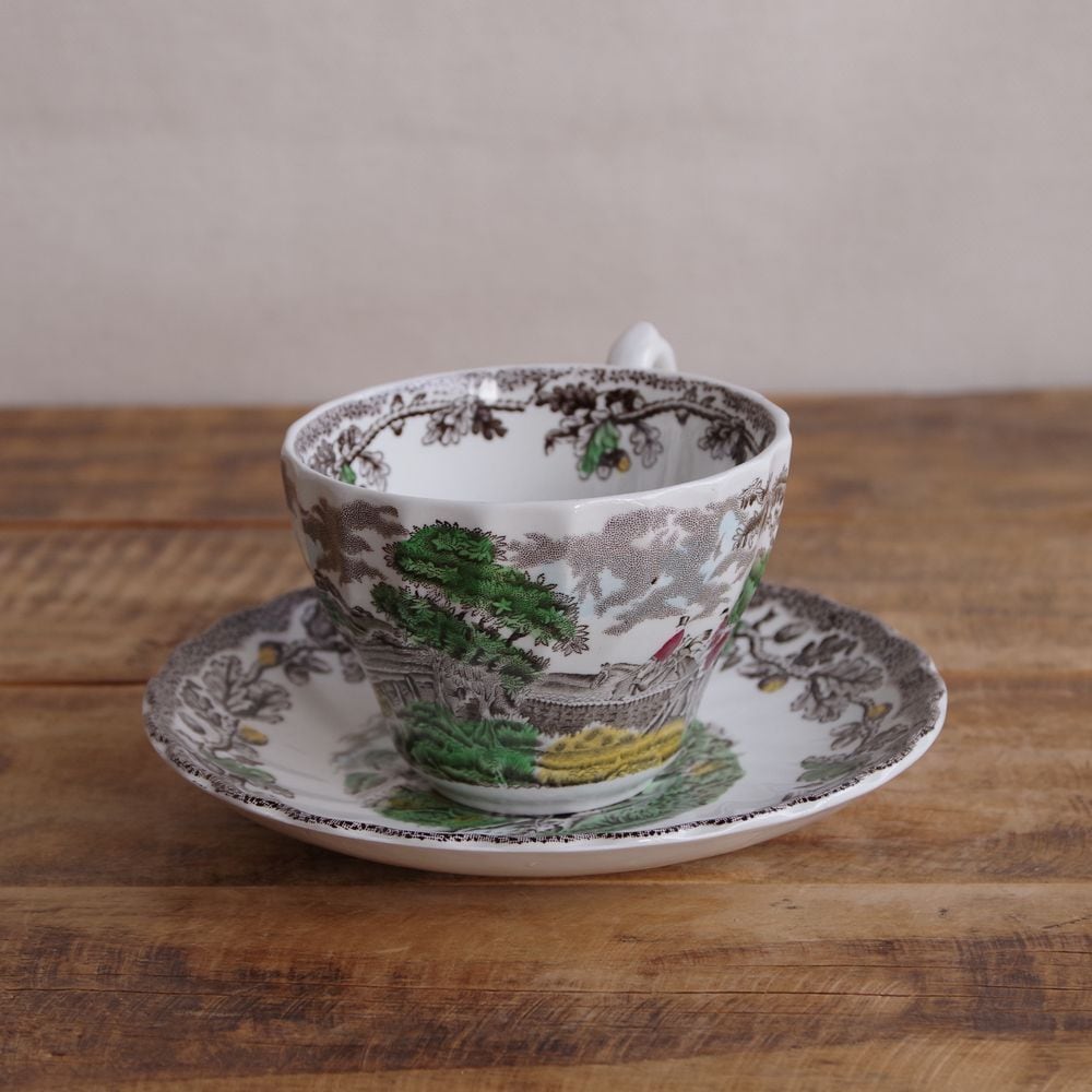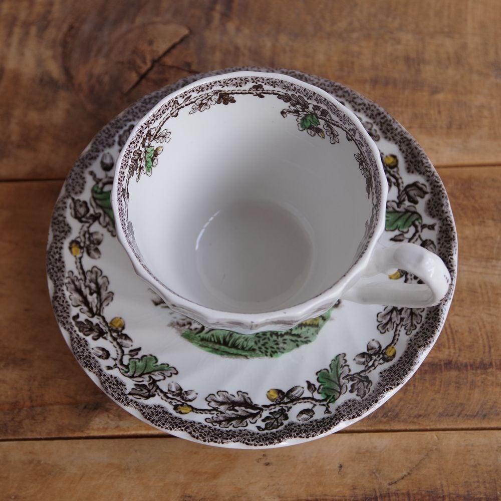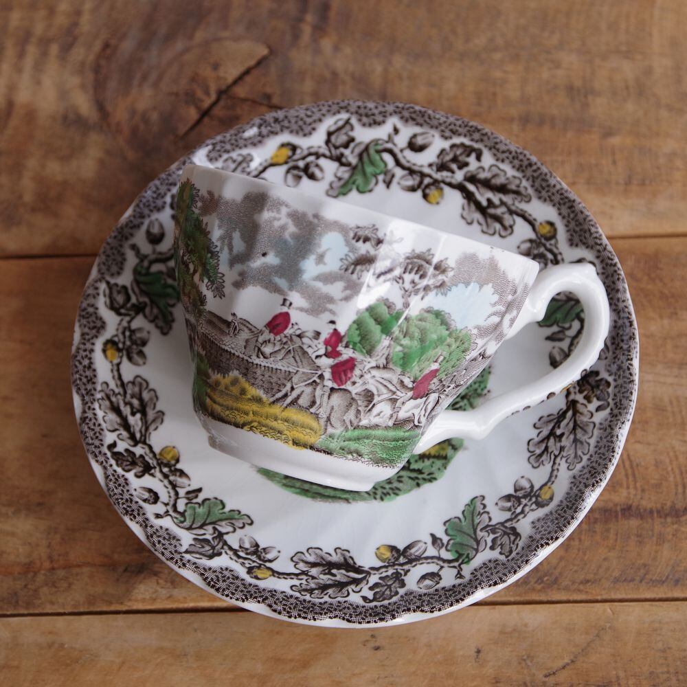 イギリス ヴィンテージ 食器 馬 風景 どんぐり コーヒーカップ ソーサー レトロ 陶器 ミヨット カントリーライフ #230923-1 Myott Country Life 人物 ハンティング