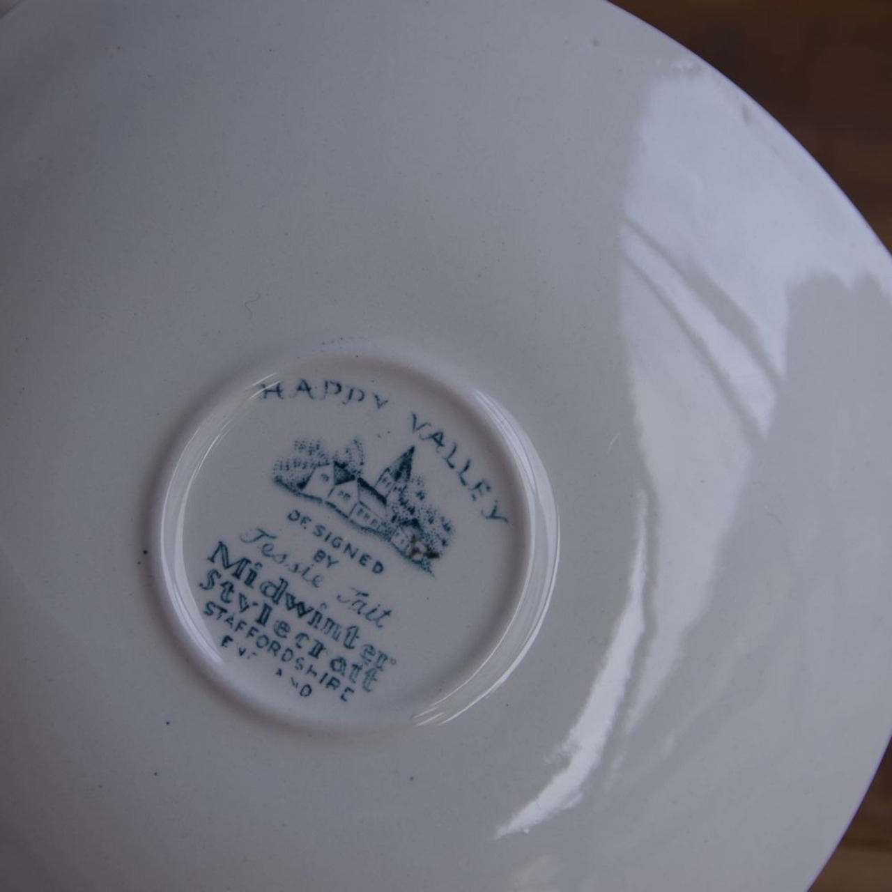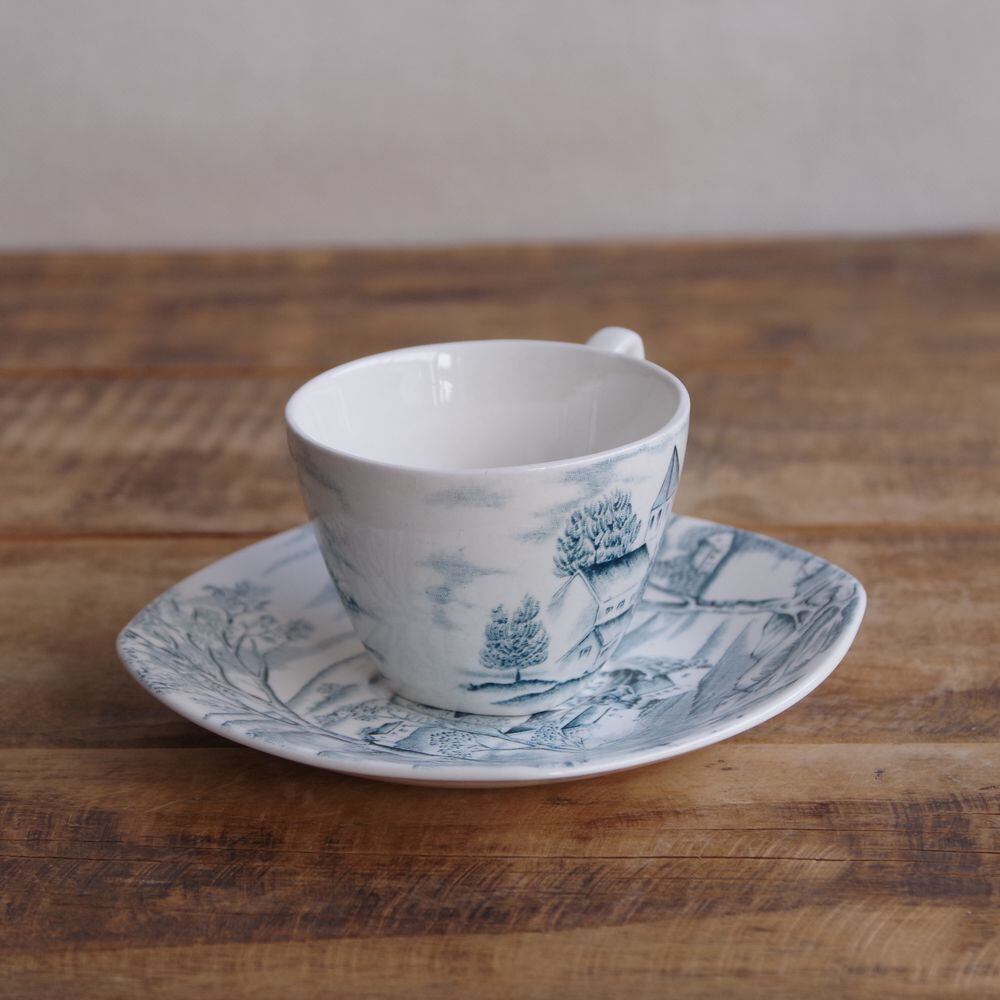 イギリス ヴィンテージ 食器 レトロ 村 風景 家 デミタスカップ ソーサー グリーン Midwinter Happy Village ミッドウィンター #231014-1 Jessie Tait Stylecraft ハッピービレッジ ミッドセンチュリー