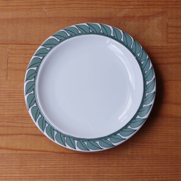 リム部分に葉の絵柄がぐるりと一周入っています。