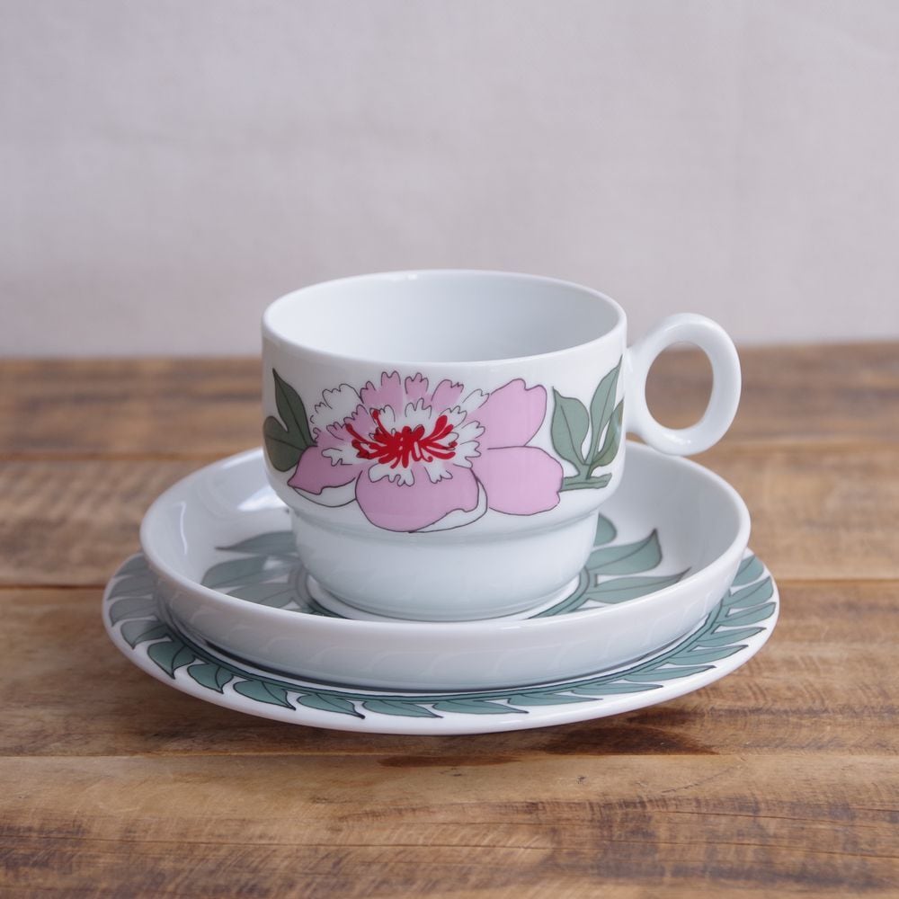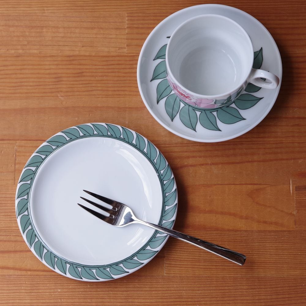 ドイツ製 ヴィンテージ ケーキ皿 15cm デザートプレート Thomas Kiruna Peony 牡丹 ローゼンタール トーマス キルナ #231111-1~4 レトロ 中皿 葉 グリーン 食器 陶器 取り皿