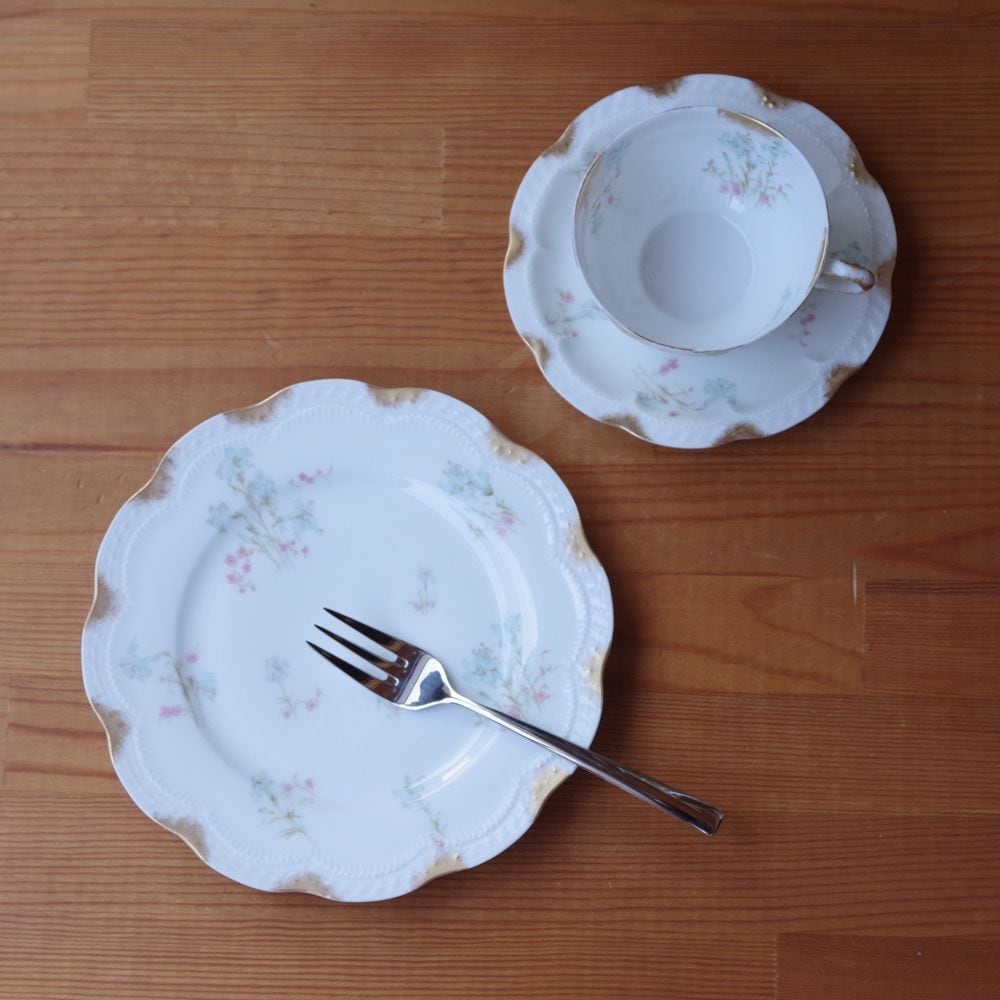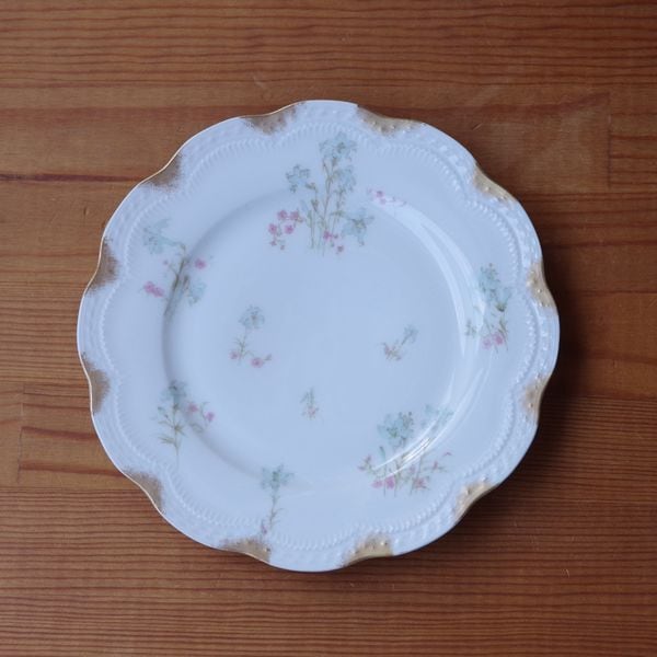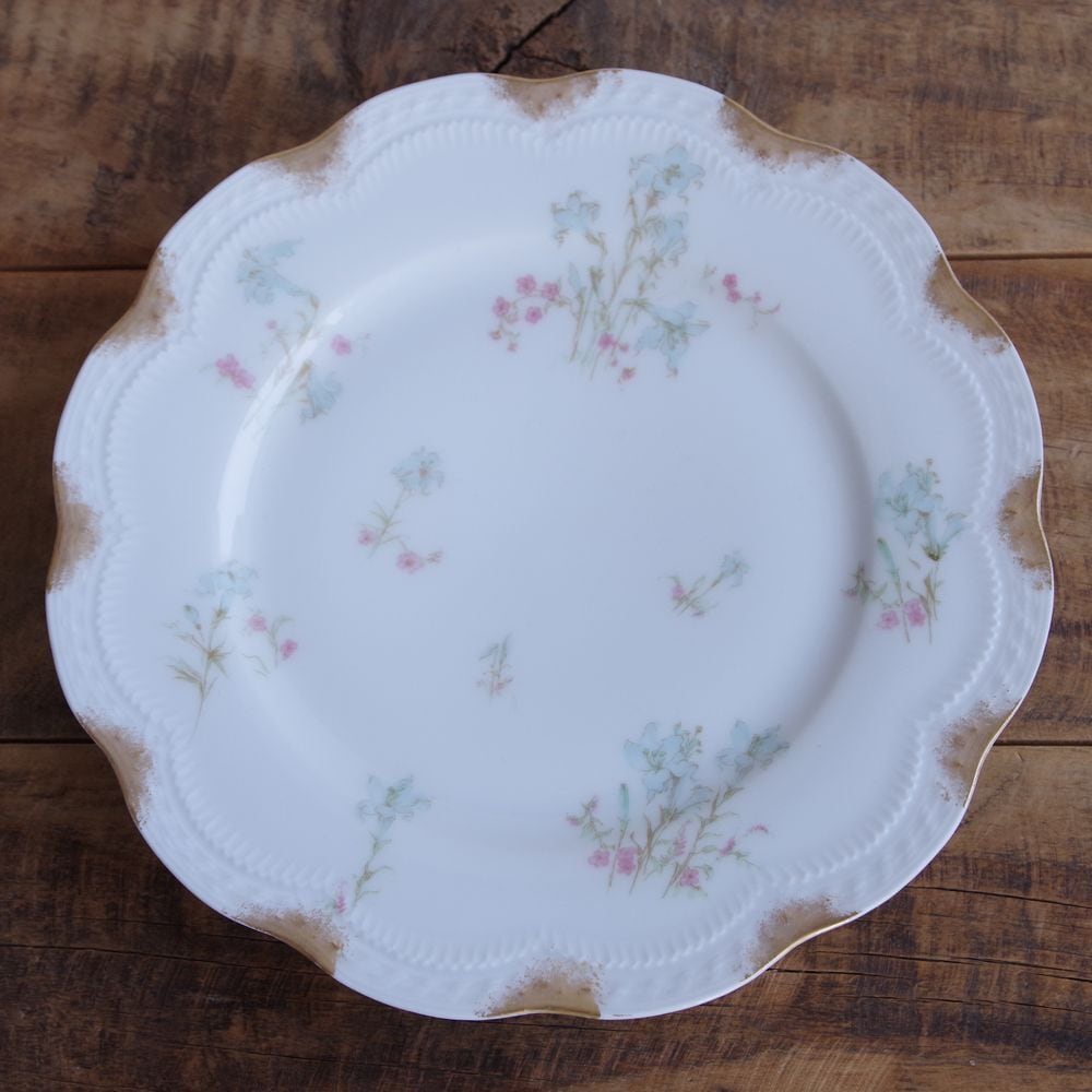 フランス アンティーク 食器 リモージュ アビランド ピンク 水色 ゴールド ゆり 花柄 デザートプレート ケーキ皿 19cm #231123-1 Limoges Haviland France ヴィンテージ 繊細 高級 陶器