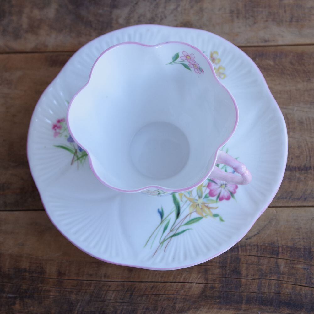 Shelley シェリー Dainty ディンティー ワイルドフラワーズ ピンク 花柄 コーヒーカップ ソーサー #231122-3 イギリス製 ヴィンテージ 食器 アンティーク Wild Flowers