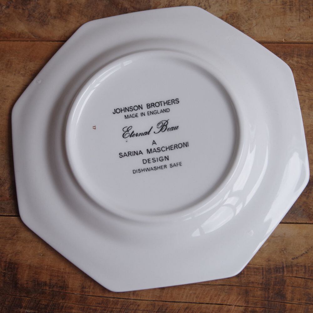 ジョンソンブラザーズ エターナルボウ デザートプレート ケーキ皿 中皿 16cm リボン 花 リース Johnson Brothers #231203-5 イギリス製 ヴィンテージ 食器 陶器 八角形