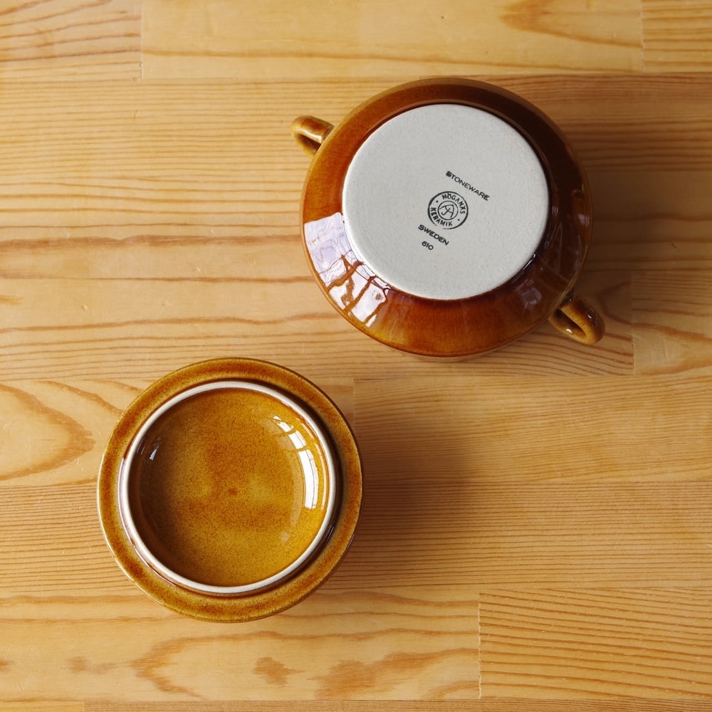 Hoganas Keramik ホガナス・ケラミック 飴色 スープボウル 蓋付き 180914-1 ストーンウェア 北欧スウェーデン製ビンテージ食器 ブラウン