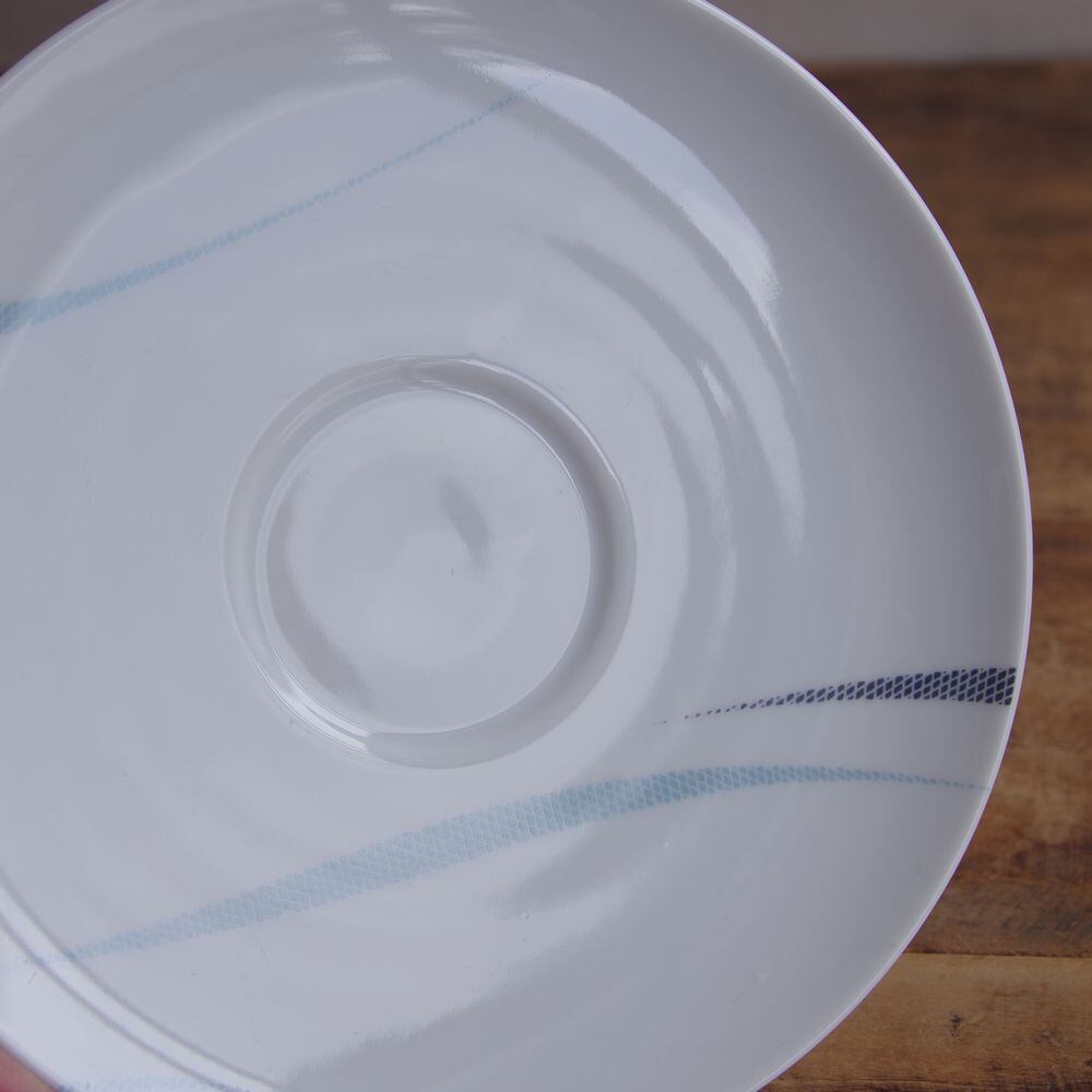 ソーサーには、ブルーやネイビーで吹き流しのような模様が入っています。