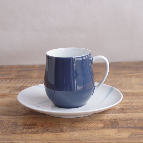 ぽってりとした形のカップは、外側の面のみネイビーに塗られています。