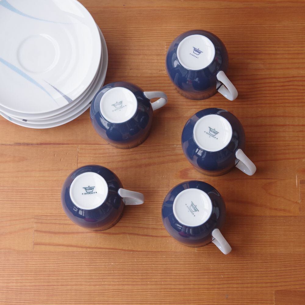 ローゼンタール トーマス ヴィンテージ 食器 コーヒーカップ ソーサー ブルー ネイビー 模様 Thomas Constanze #231223-1~5 レトロモダン Sigvard Bernadotte 陶器