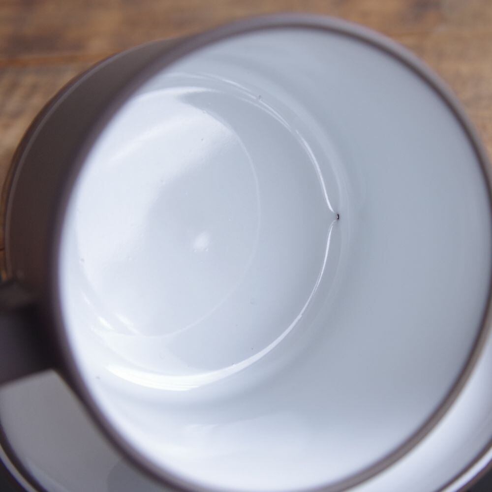 こちらのカップには、内側の底面に釉薬むらがあり、黒い点が見える箇所があります。