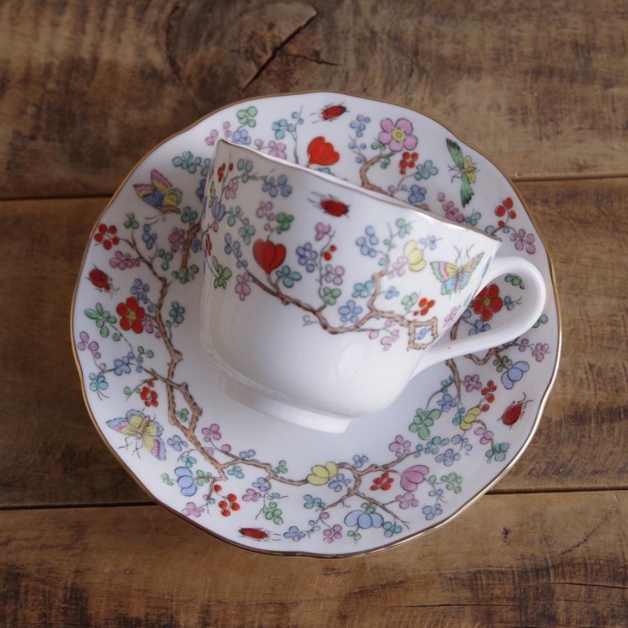 スポード シャンハイ SPODE Shanghai カップ ソーサー アンティーク 食器 花 蝶 テントウムシ #210807-5 コープランド Copeland イギリス ヴィンテージ オリエンタル