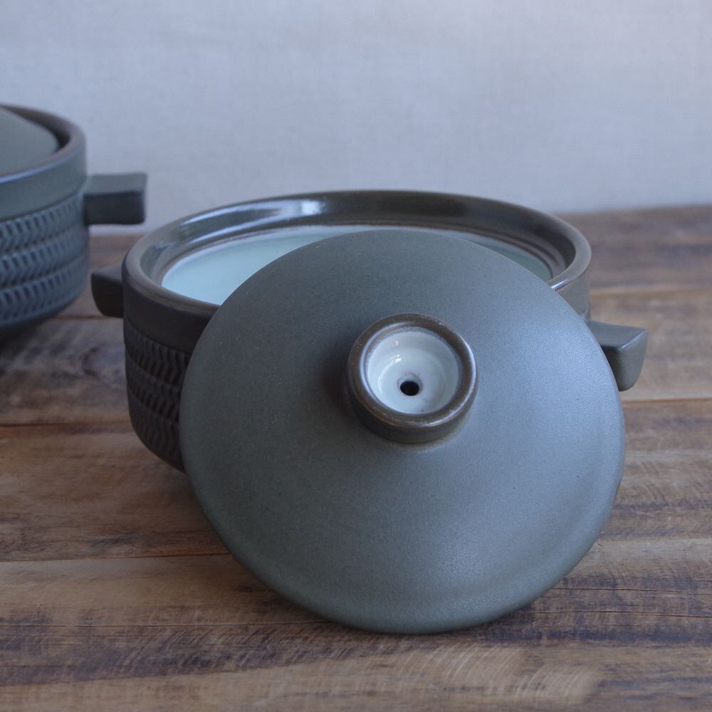 蓋のつまみの中央には、蒸気抜きのための穴が開いています。
