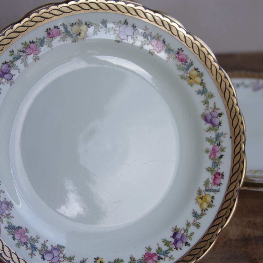 3枚セット アンティーク食器 ケーキ皿 デザートプレート 16cm ベリー 木の実 Plant Tuscan タスカン トスカン 陶器 #231228 イギリス レトロ 手塗り ヴィンテージ