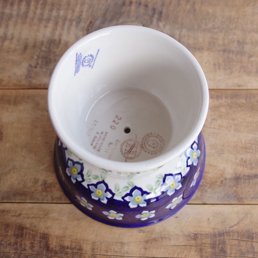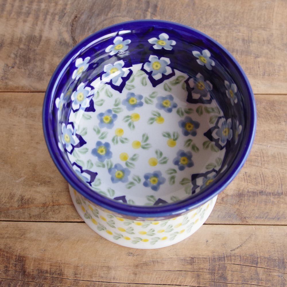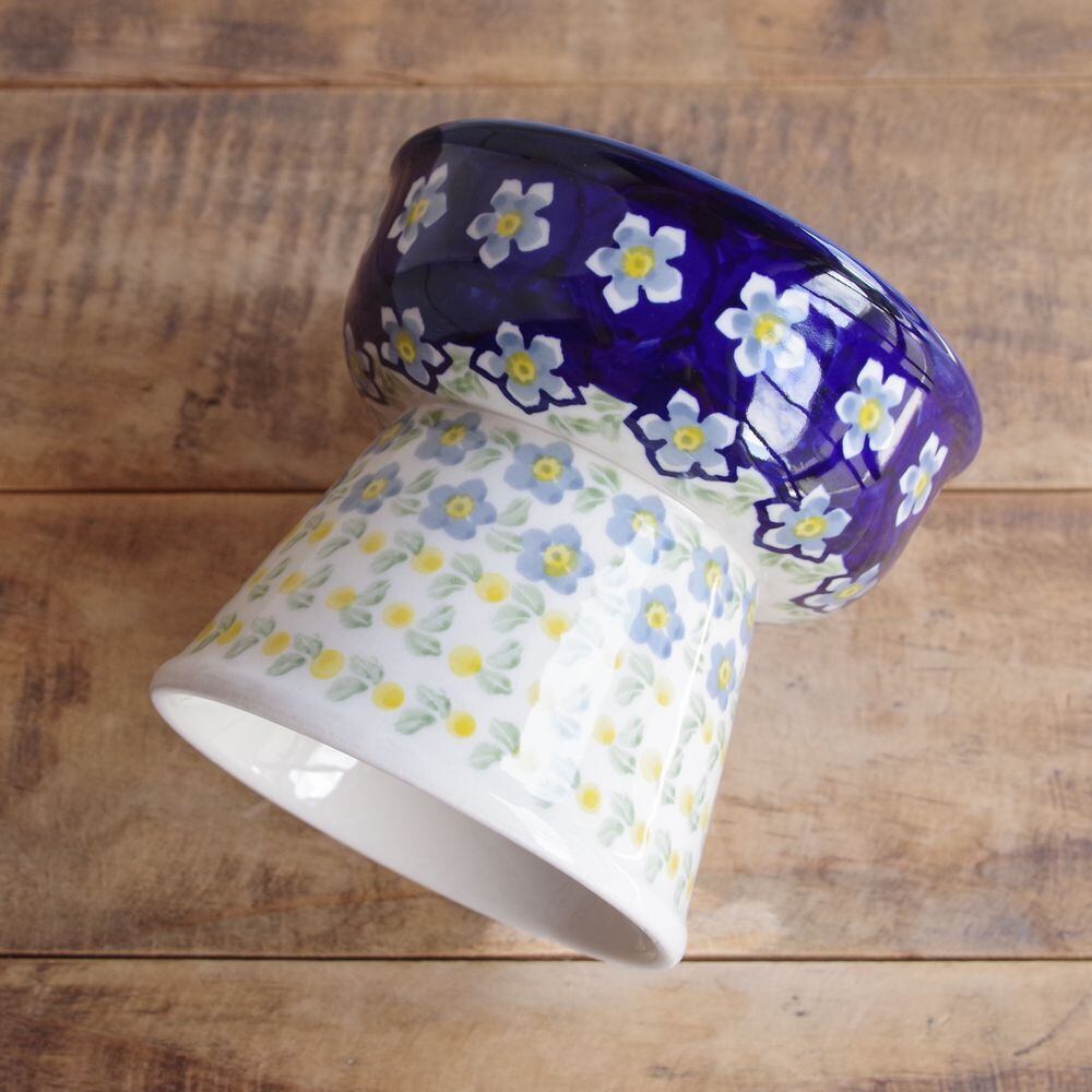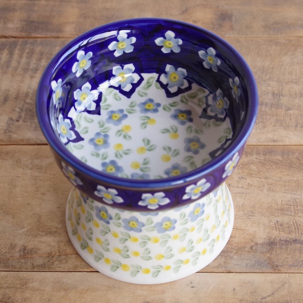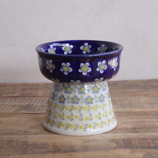 【再入荷】【新品】 ポーリッシュポタリー ポーランド陶器 食器 ペットボウル 脚付き 青 水色 ブルー 花柄 ペットグッズ えさ台 P37-AS76 ボレスワヴィエツ 猫 Boleslawiec レトロ プレゼント