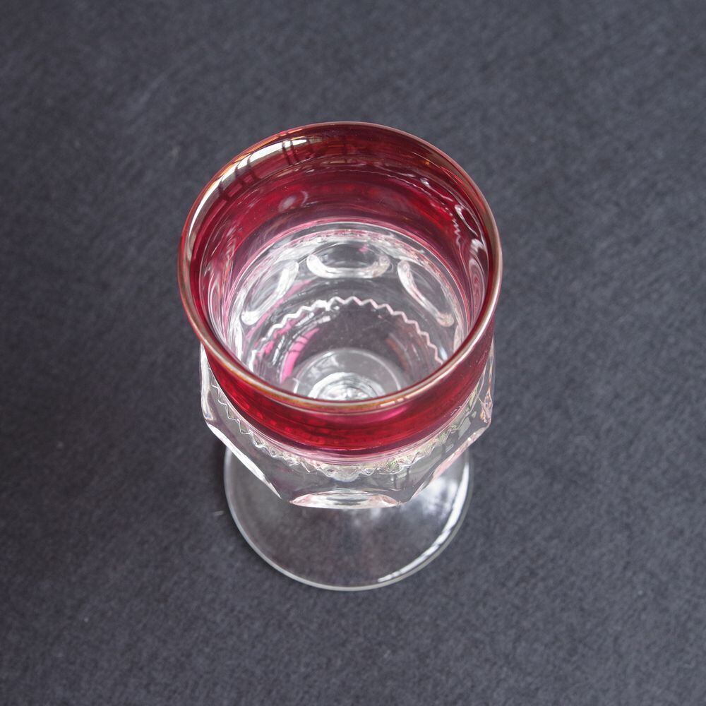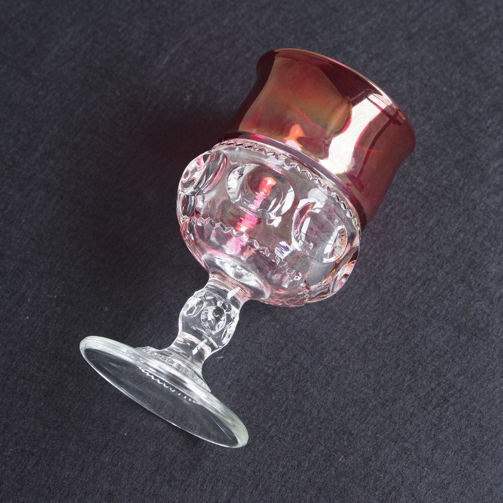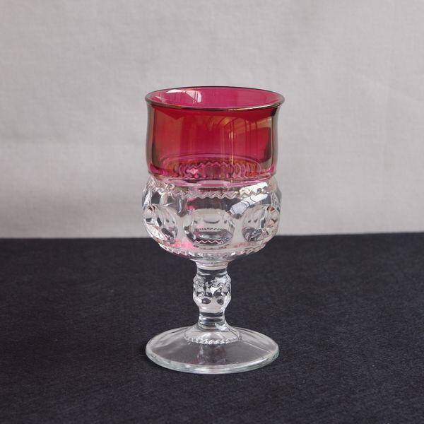 ヴィンテージ ガラス食器 Tiffin ティフィン ゴブレット ワイングラス 赤 14cm キングズクラウン Indiana Glass インディアナグラス #240215-1 レトロ モダン おしゃれ Kings Crown コップ