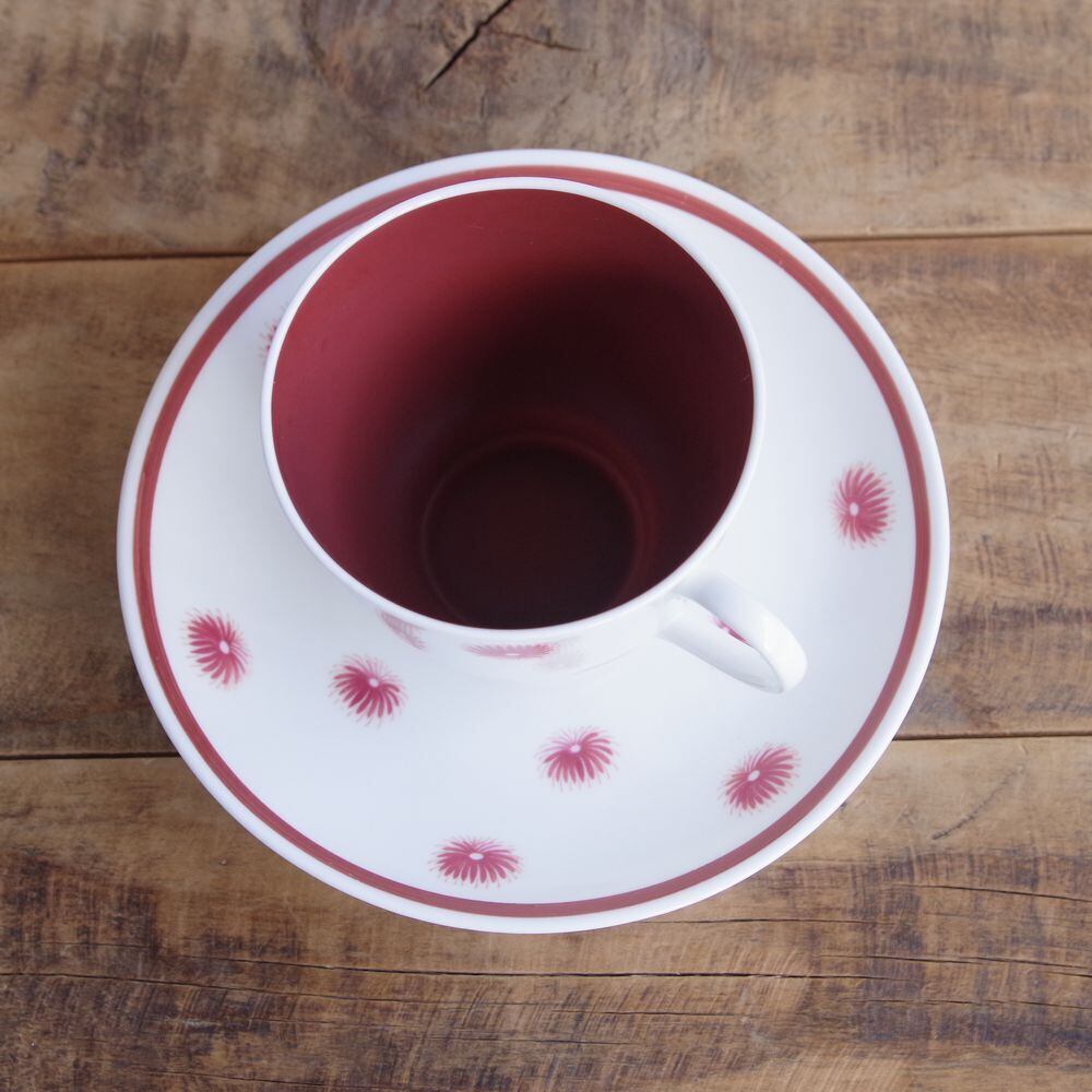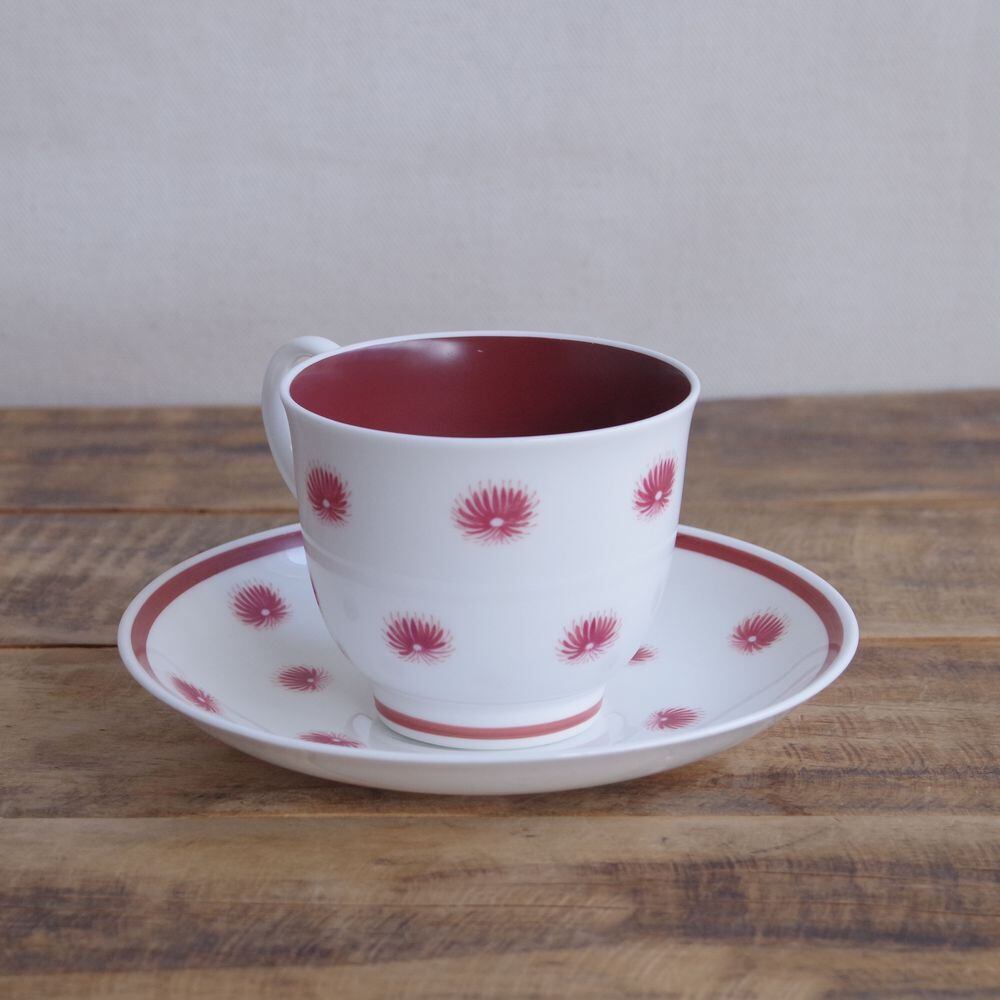 スージークーパー コーヒーカップ ソーサー 赤 花柄 ヴィンテージ 食器 菊 One O'clocks #240217-3 アンティーク Susie Cooper 陶器 ウェッジウッド