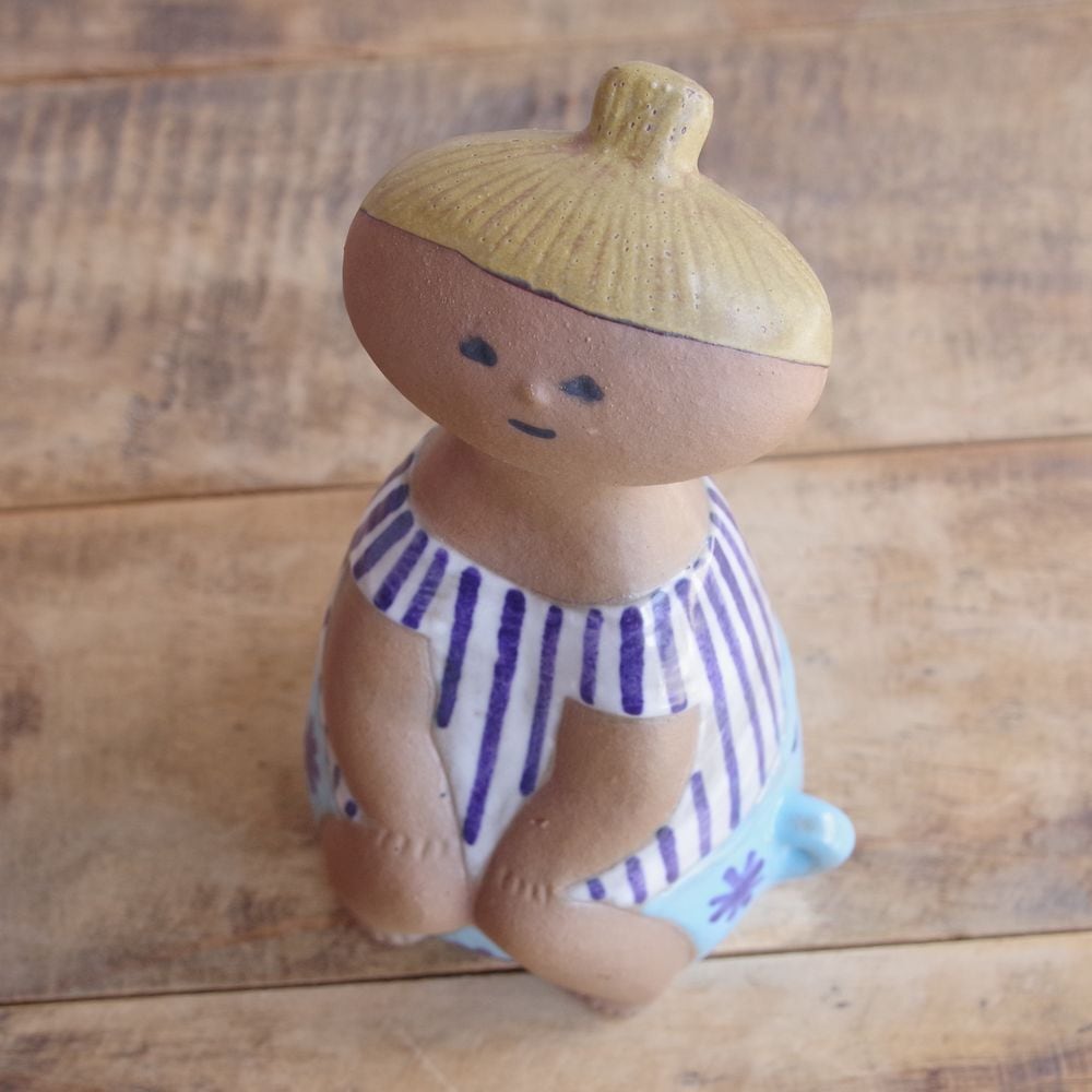 お団子髪の女の子がおまるに座る姿がモチーフになっています。
