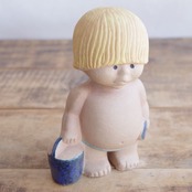 バケツとスコップを持った、おかっぱ頭の男の子がモチーフになっています。