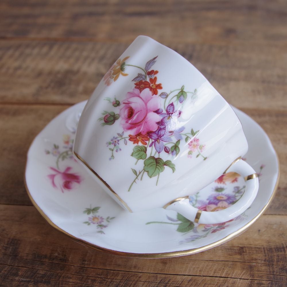 ロイヤルクラウンダービー ポウジーズ コーヒーカップ ソーサー 花柄 ヴィンテージ食器 ブーケ #240322-2 イギリス アンティーク Royal Crown Derby Posies