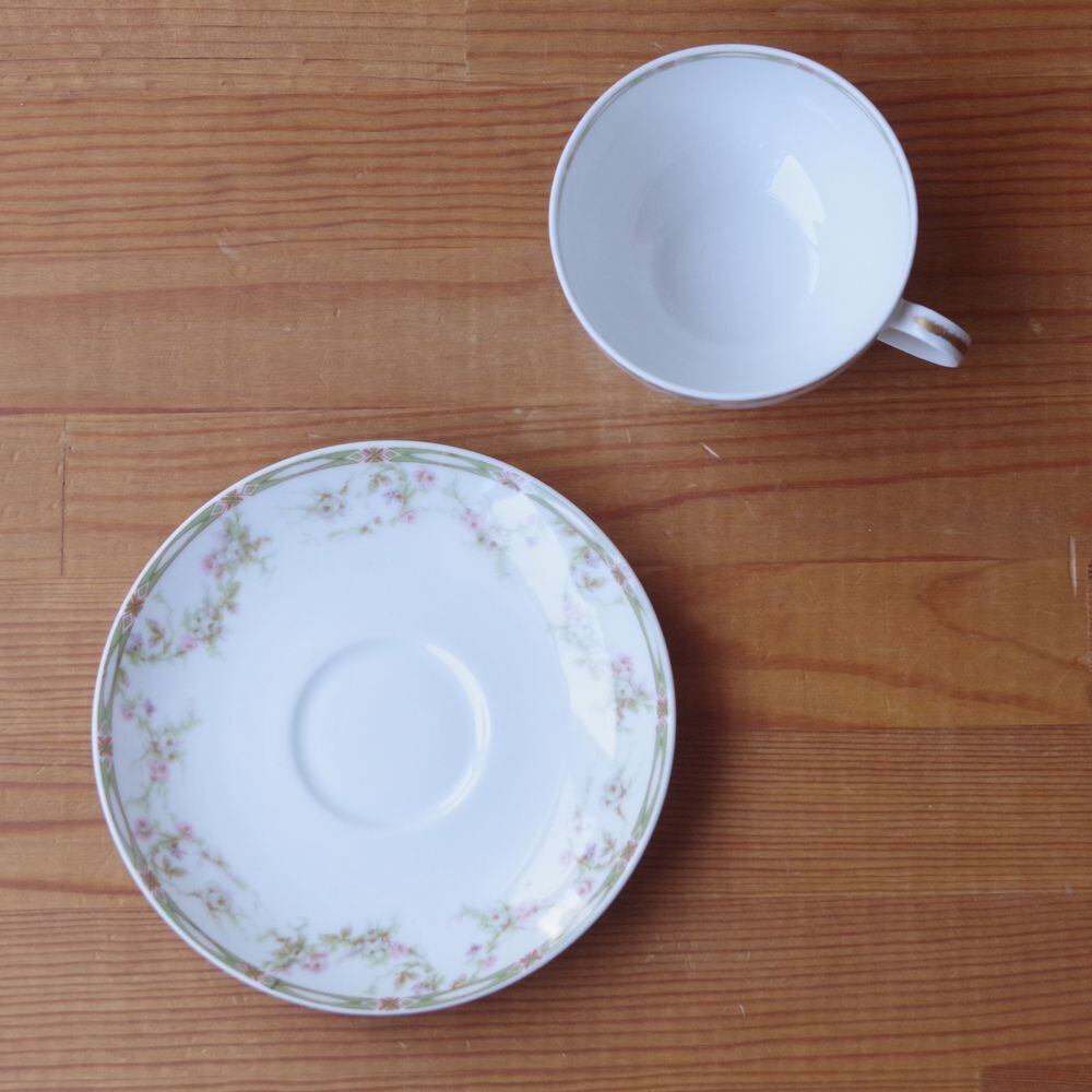 フランス アンティーク 食器 リモージュ ティーカップ ソーサー セオドア・アビランド 薔薇 花柄 Theodore Haviland #240321-2 Limoges France レトロ 陶器 ピンク むらさき 花柄