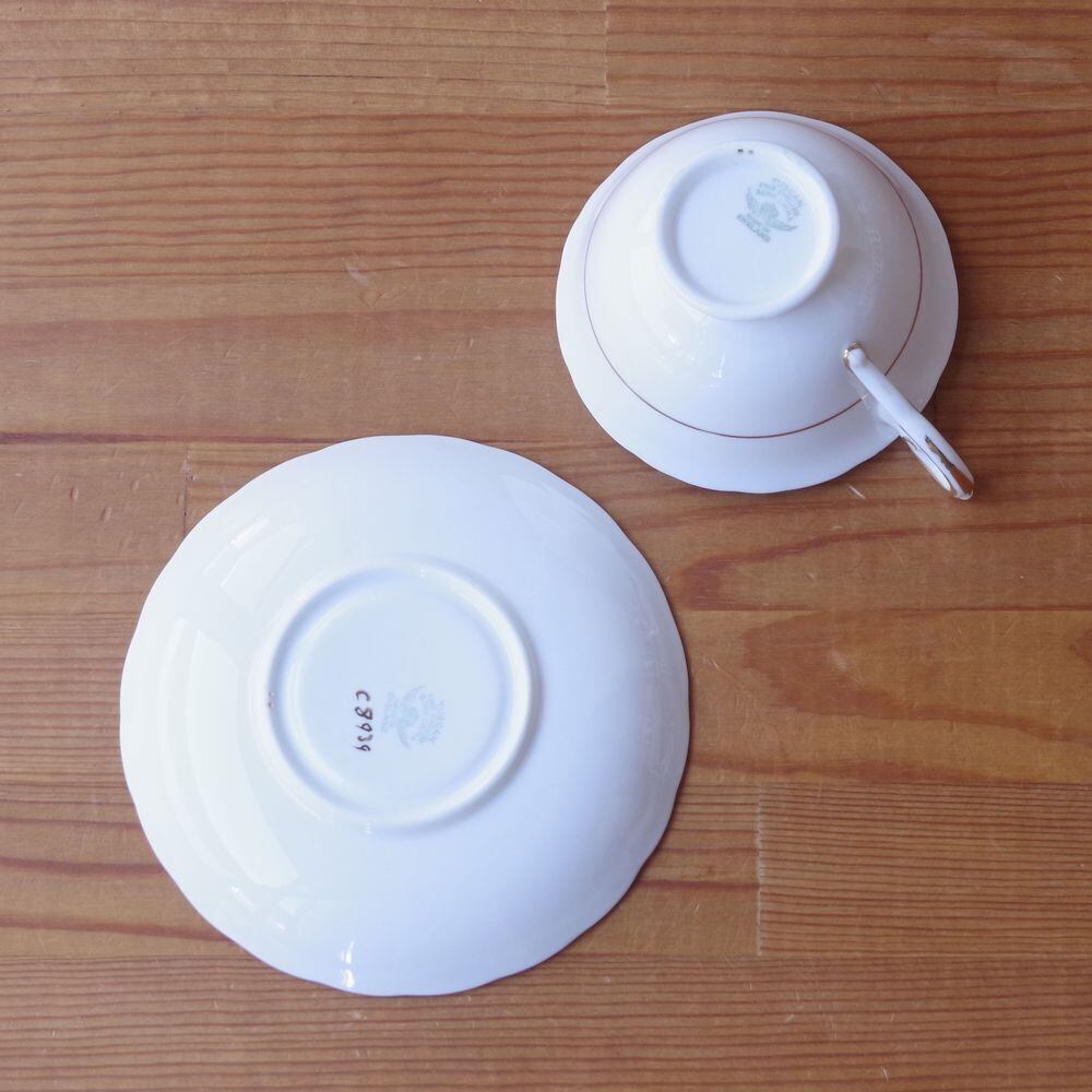 ソーサーにも同様の絵柄があり、ゴールドのふちどりが入っています。