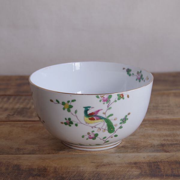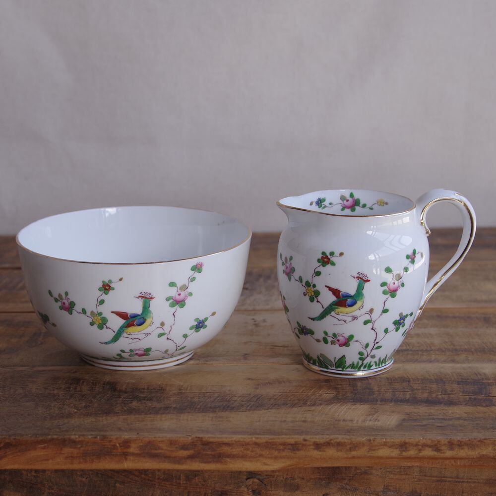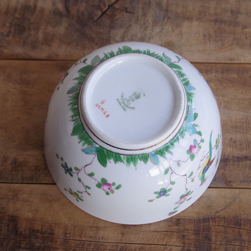 クラウンスタッフォードシャー Crown Staffordshire 孔雀 鳥 花柄 シュガーボウル 小鉢 アンティーク食器 #240329 イギリス 陶磁器 レトロ 手塗り