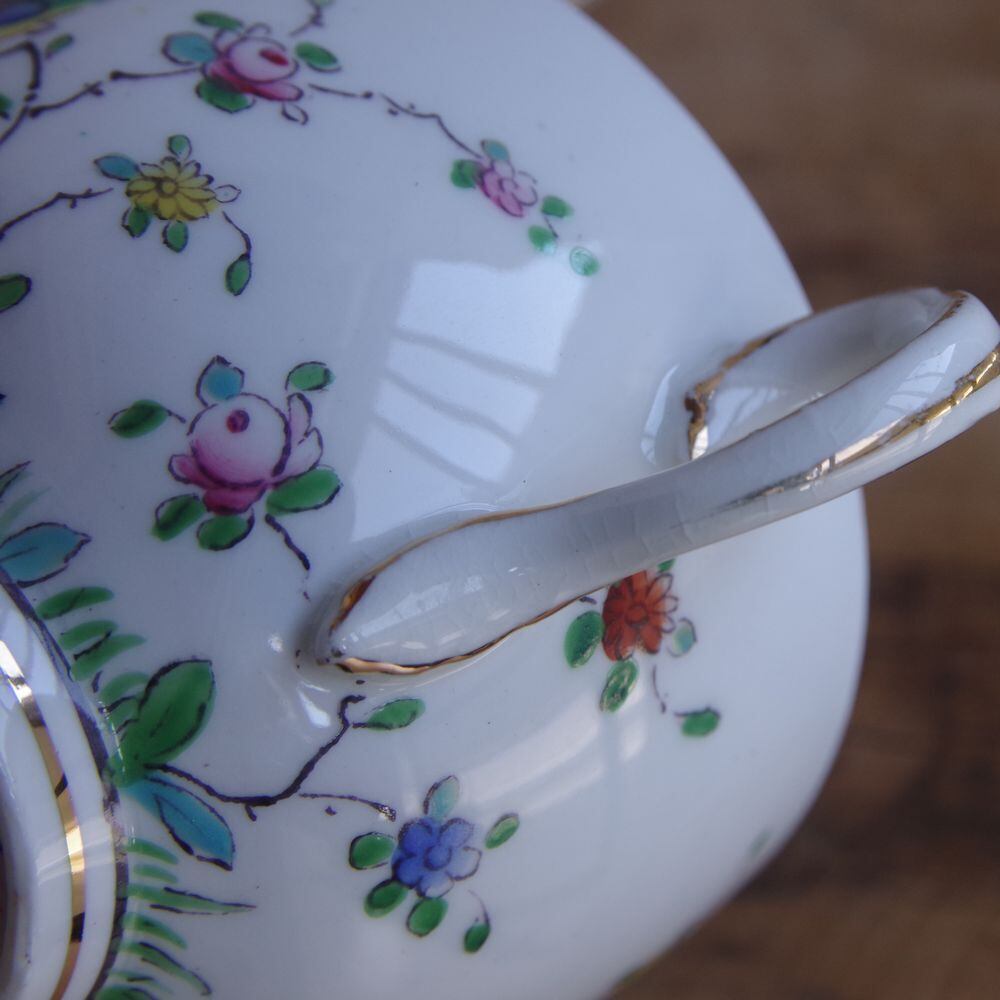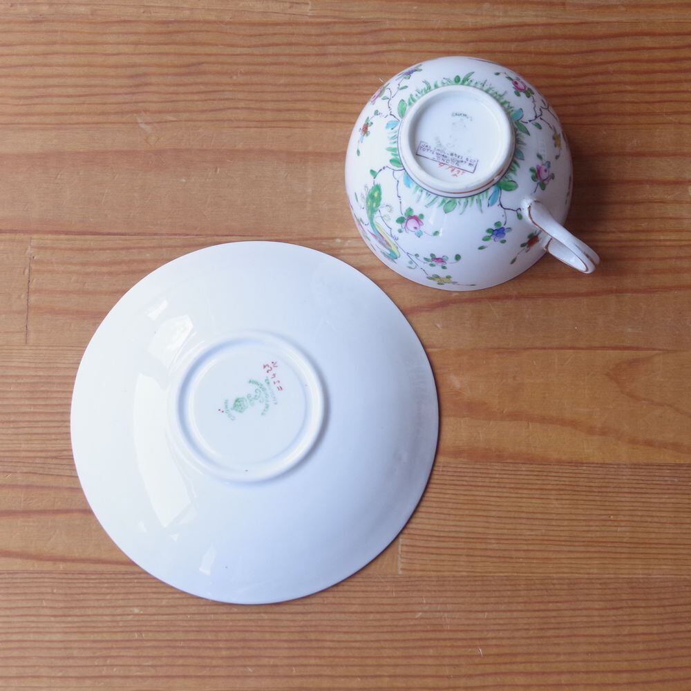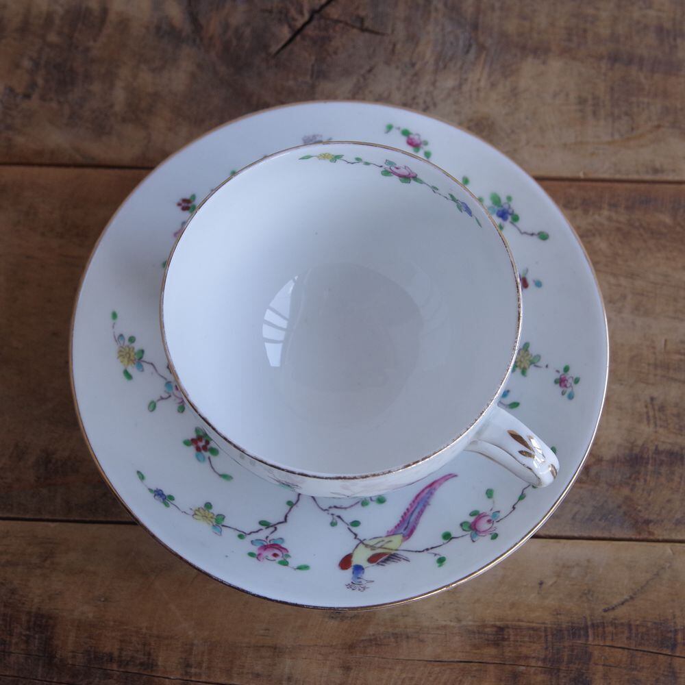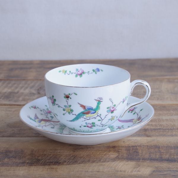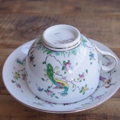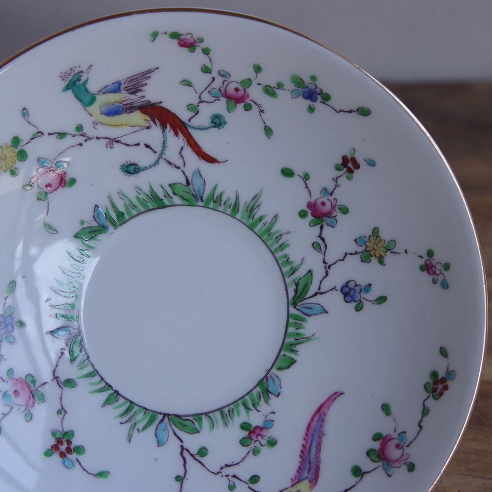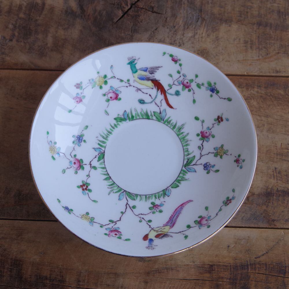 イギリス アンティーク食器 コーヒーカップ ソーサー クラウンスタッフォードシャー 孔雀 鳥 花柄 #240329-3 Crown Staffordshire ヴィンテージ 陶磁器 レトロ 手塗り