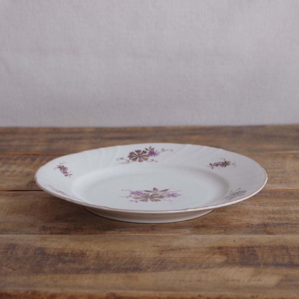 北欧 ヴィンテージ食器 アラビア アイボリー デザートプレート ケーキ皿 17cm ARABIA ブラウン 紫 花柄 #240330-6 陶磁器 アンティーク レトロ ゴールド レア 希少