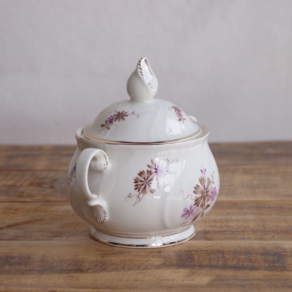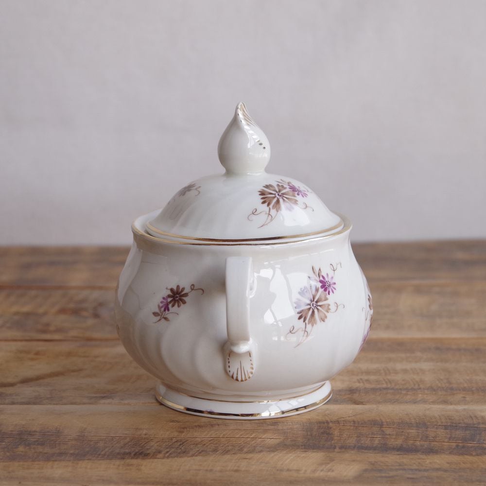 アラビア アイボリー シュガーポット 砂糖入れ ARABIA ブラウン 紫 花柄 北欧 ヴィンテージ食器 #240330