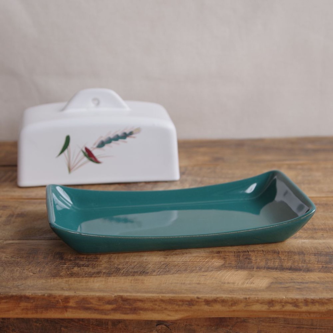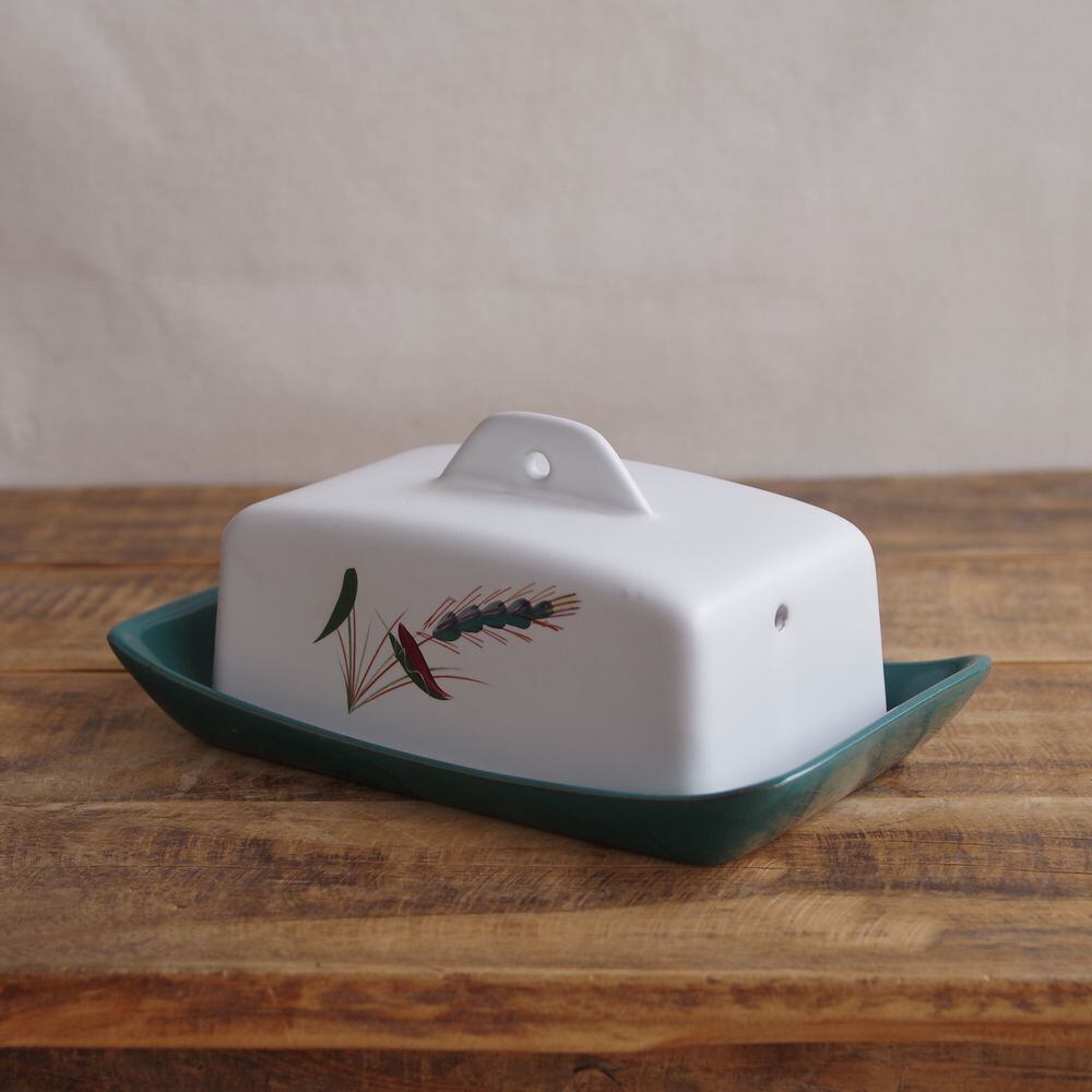 デンビー DENBY グリーンウィート 麦 バターケース Green Wheat ヴィンテージ 食器 陶器 手描き #240405 イギリス 陶器 レトロモダン 渋め