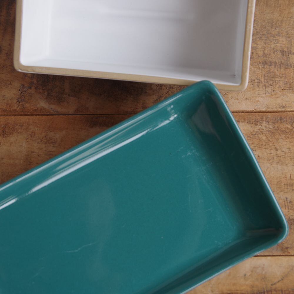 グリーン色の長方形の皿と、
