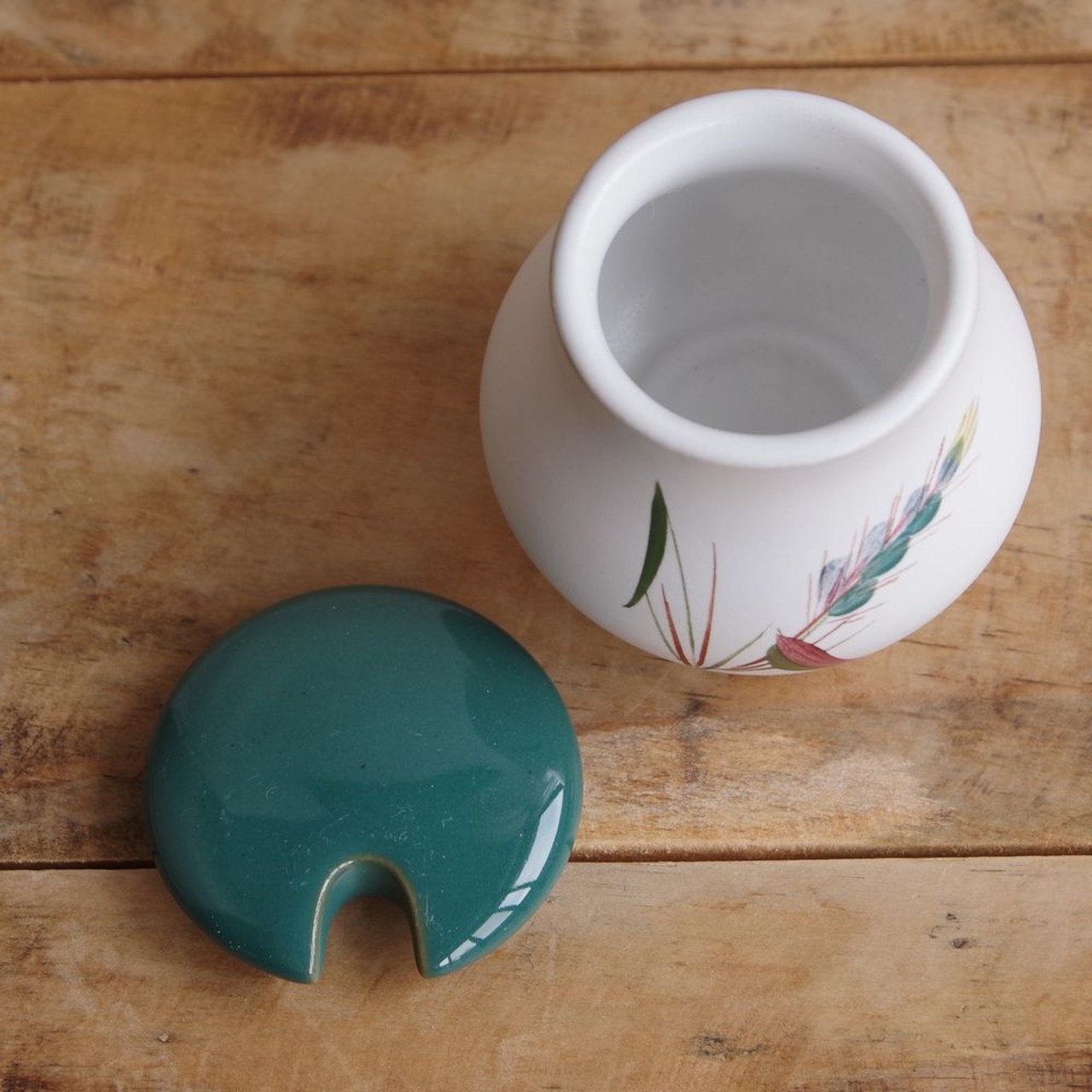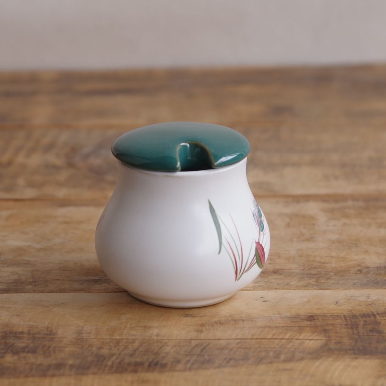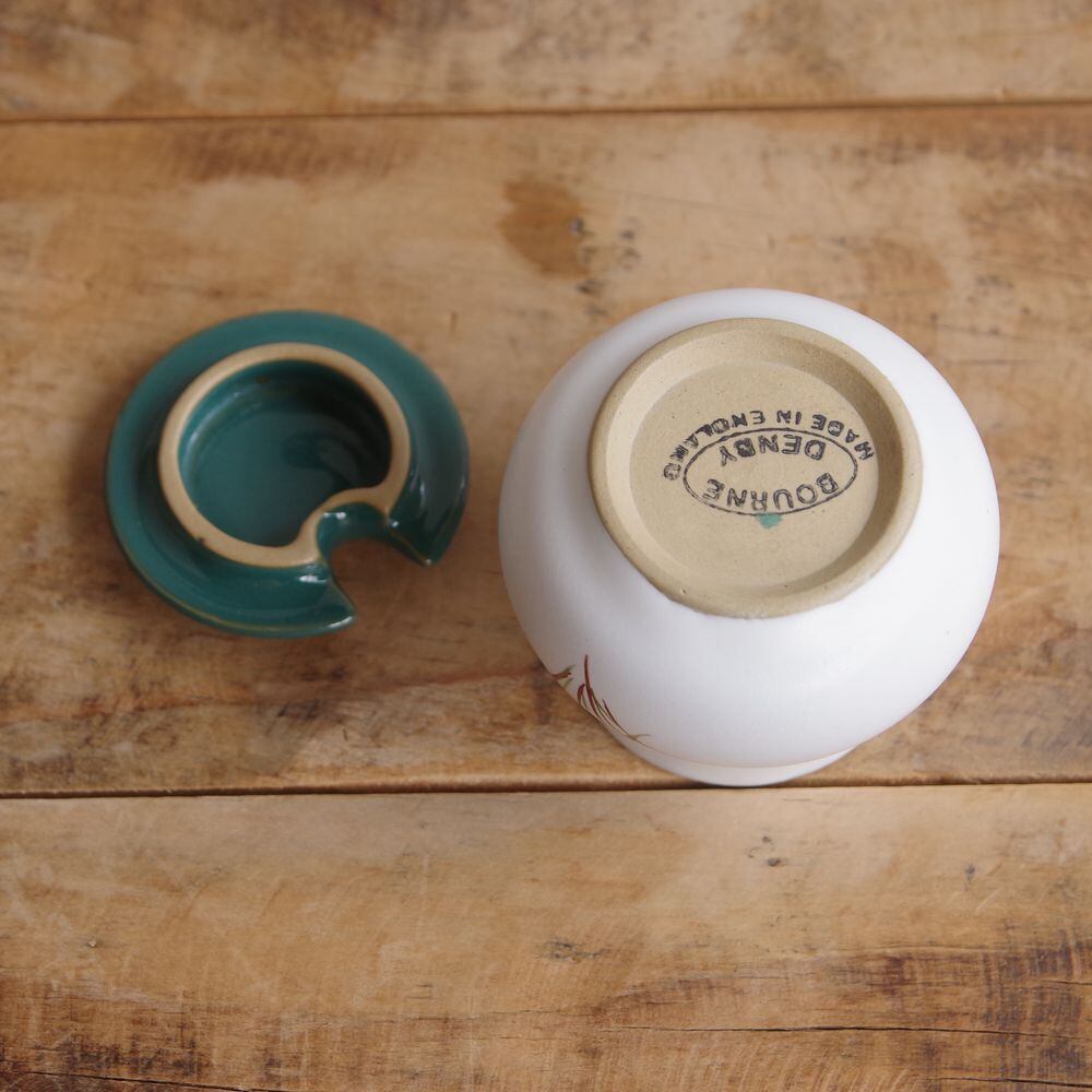 デンビー DENBY グリーンウィート からし入れ マスタードケース スパイスポット 調味料入れ Green Wheat ヴィンテージ 食器 手描き #240405 イギリス 陶器 レトロモダン 渋め