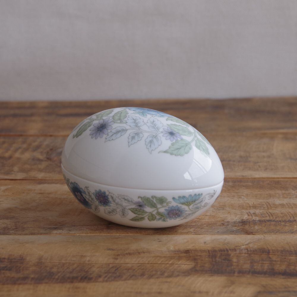 ウェッジウッド クレメンタイン ブルー 花柄 トリンケットボックス 蓋物 容器 小物入れ 卵型 エッグ Wedgwood Clementine #240411-14 レトロ ヴィンテージ 食器 陶器 雑貨
