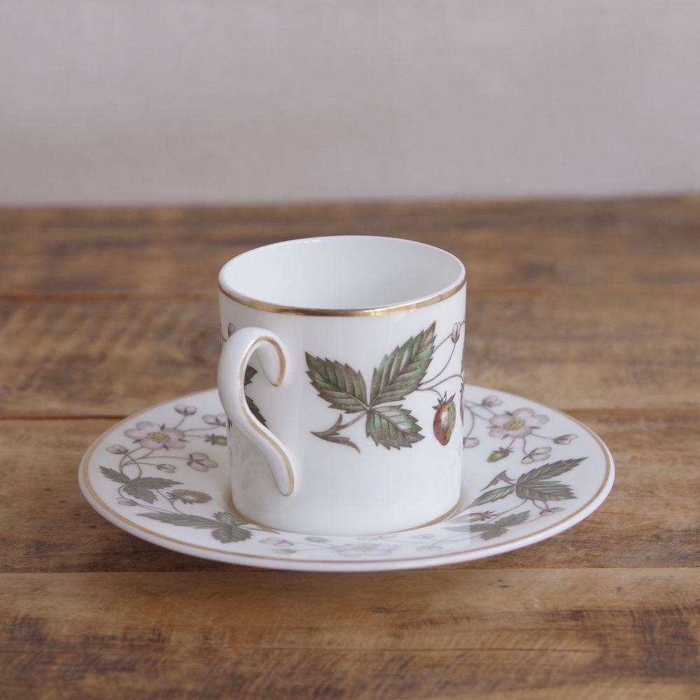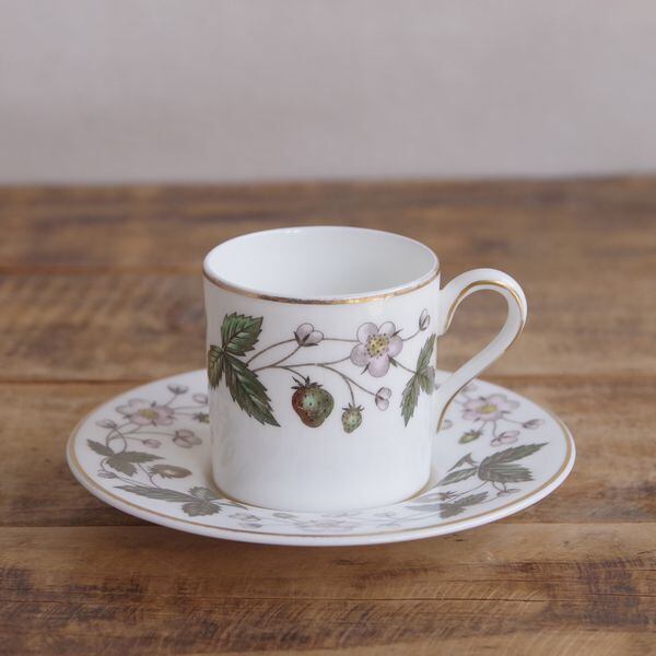 ウェッジウッド ストロベリーヒル デミタスカップ ソーサー Wedgwood Strawberry Hill エスプレッソカップ 小さめ #240417-4 ヴィンテージ食器 陶器 いちご柄 金彩 かわいい フルーツ柄