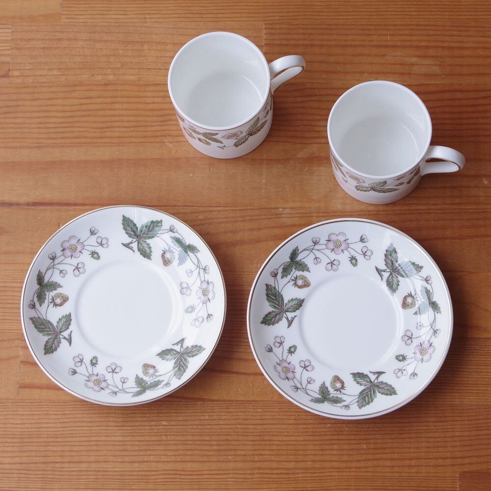 ウェッジウッド ストロベリーヒル コーヒーカップ ソーサー いちご柄 Wedgwood Strawberry Hill ヴィンテージ食器 陶器 #240417-6,7 アンティーク 金彩 かわいい フルーツ柄 レトロ