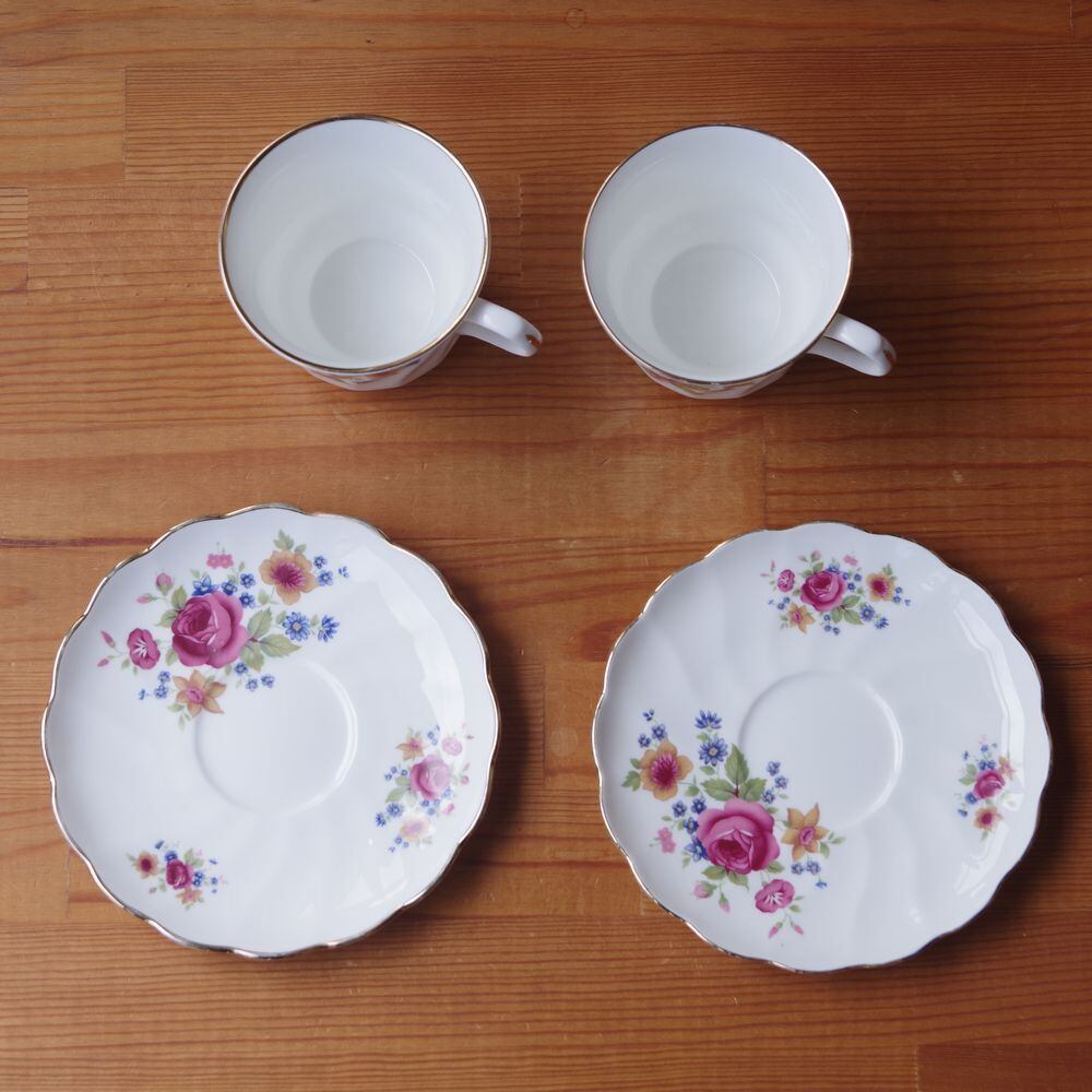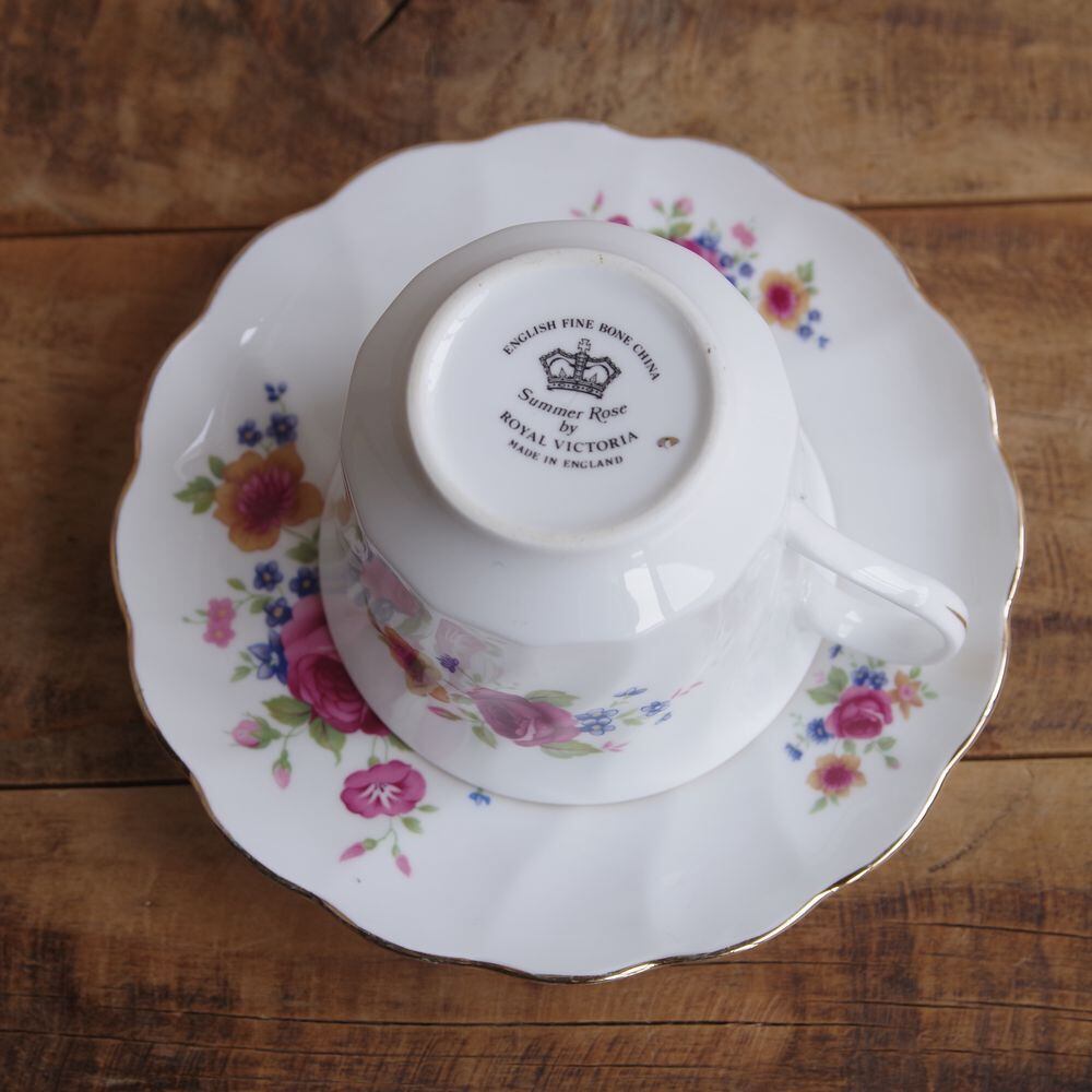 ヴィンテージ食器 薔薇 花柄 コーヒーカップ ソーサー Royal Victoria Summer Rose レトロ #240522-1,2 イギリス アンティーク ロイヤルビクトリア サマーローズ