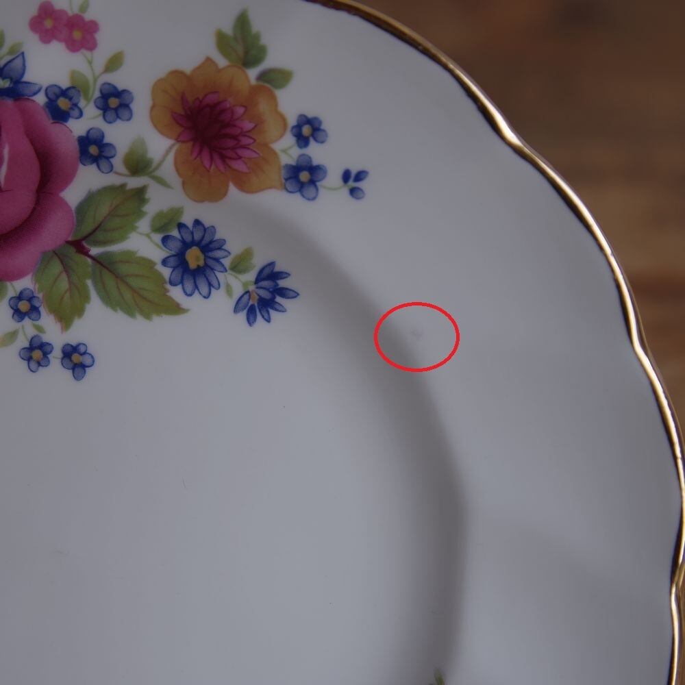 こちらのお皿には、リム部分にわずかに黒っぽいシミがある箇所があります。