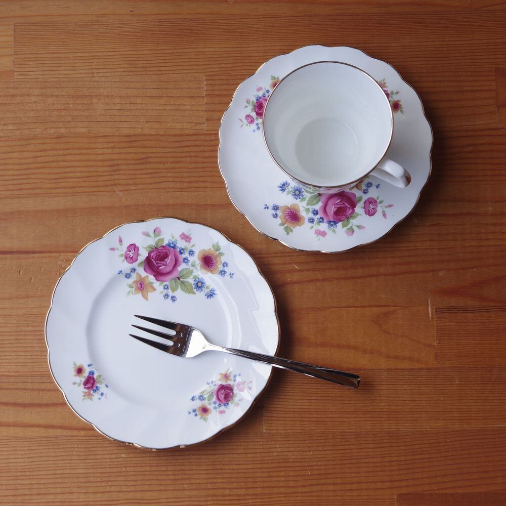 ヴィンテージ食器 薔薇 花柄 ケーキ皿 デザートプレート 16cm Royal Victoria Summer Rose レトロ #240522-4 イギリス アンティーク ロイヤルビクトリア サマーローズ