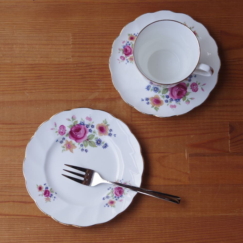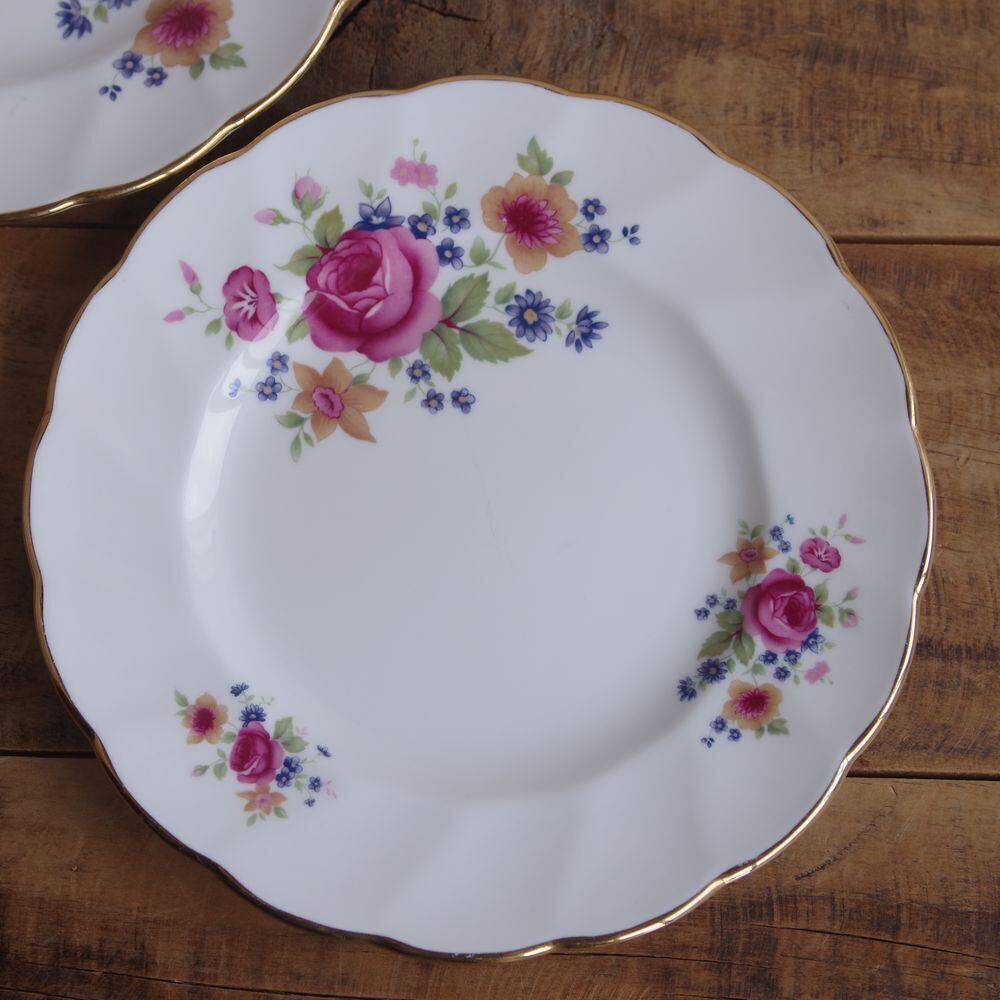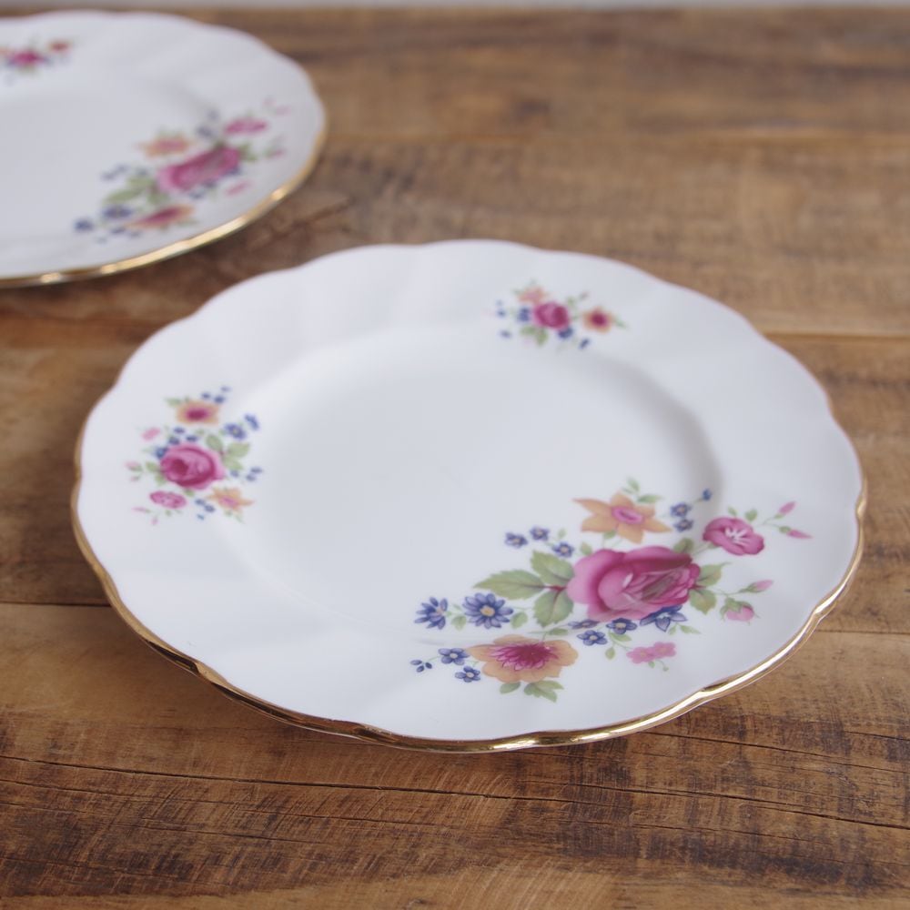 アンティーク食器 薔薇 レトロ 花柄 ケーキ皿 デザートプレート 16cm Royal Victoria Summer Rose #240522-5,6 イギリス ヴィンテージ 陶磁器 ロイヤルビクトリア サマーローズ