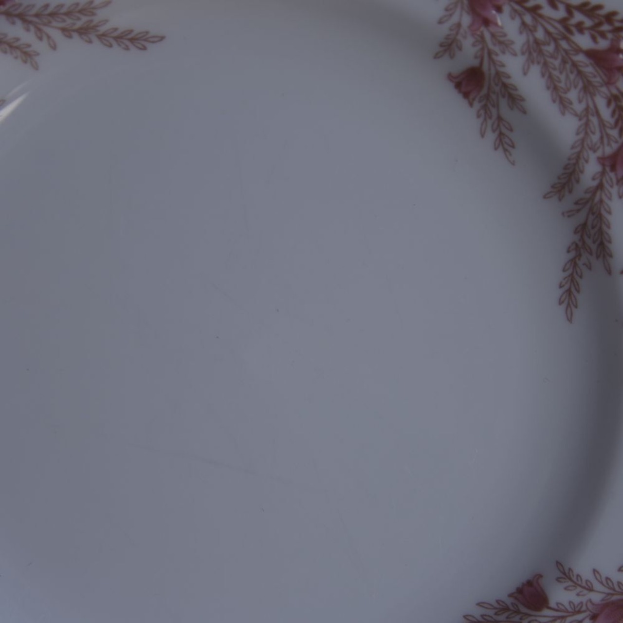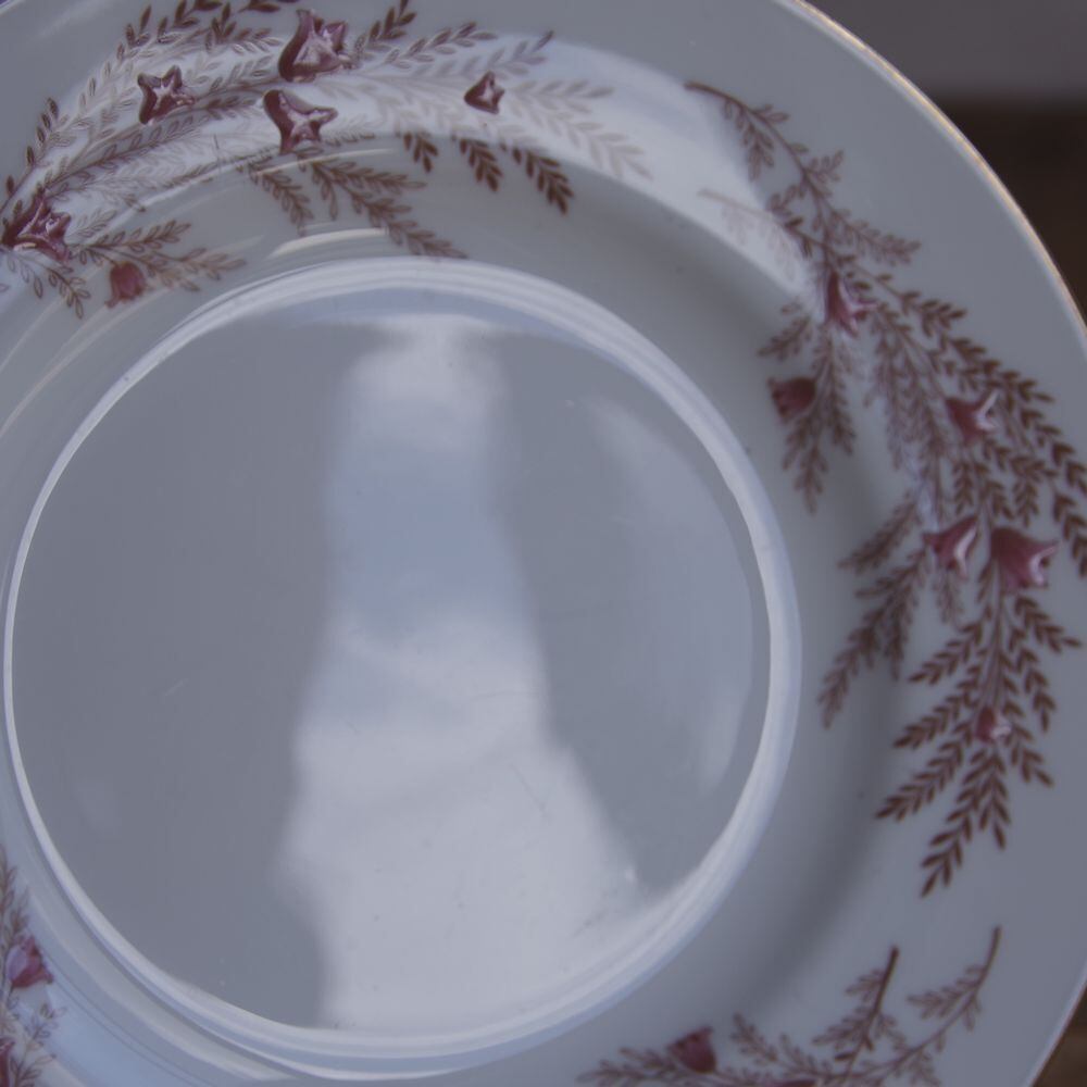 リム部分に、ブラウンで小さな花をつけた枝の絵柄が入っており、
