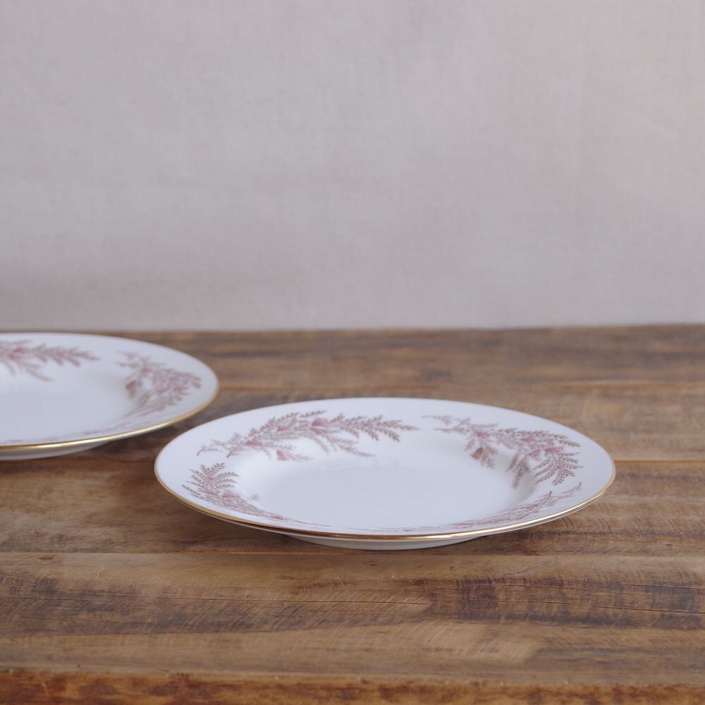 Minton Bedford ミントン ベッドフォード ケーキ皿 デザートプレート 16cm 小さめ ヴィンテージ食器 陶器 紫 花柄 ゴールド #240529-5,6 イギリス アンティーク