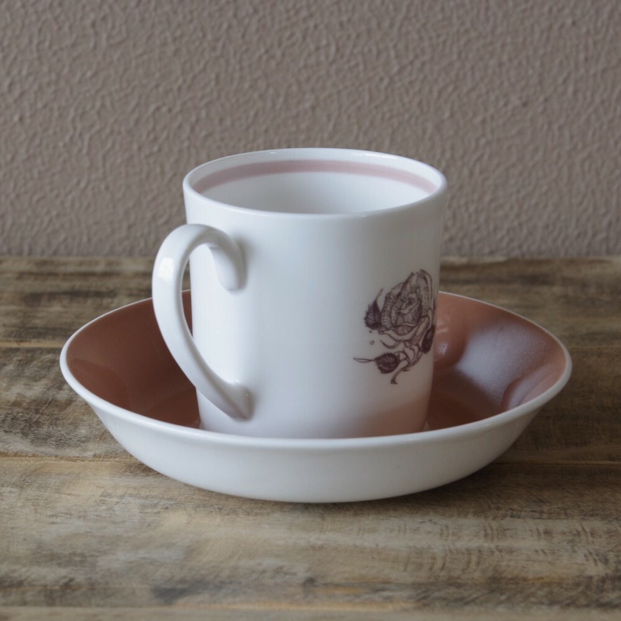 ソーサーはピンクがかったベージュですが、カップを置く部分だけ白くなっています。