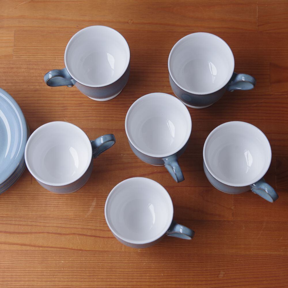 デンビー DENBY Castile カスティーリャ コーヒーカップ ソーサー #240703-1~6 ビンテージ 食器 イギリス製 シンプル レトロモダン 水色 ブルー おしゃれ 陶器