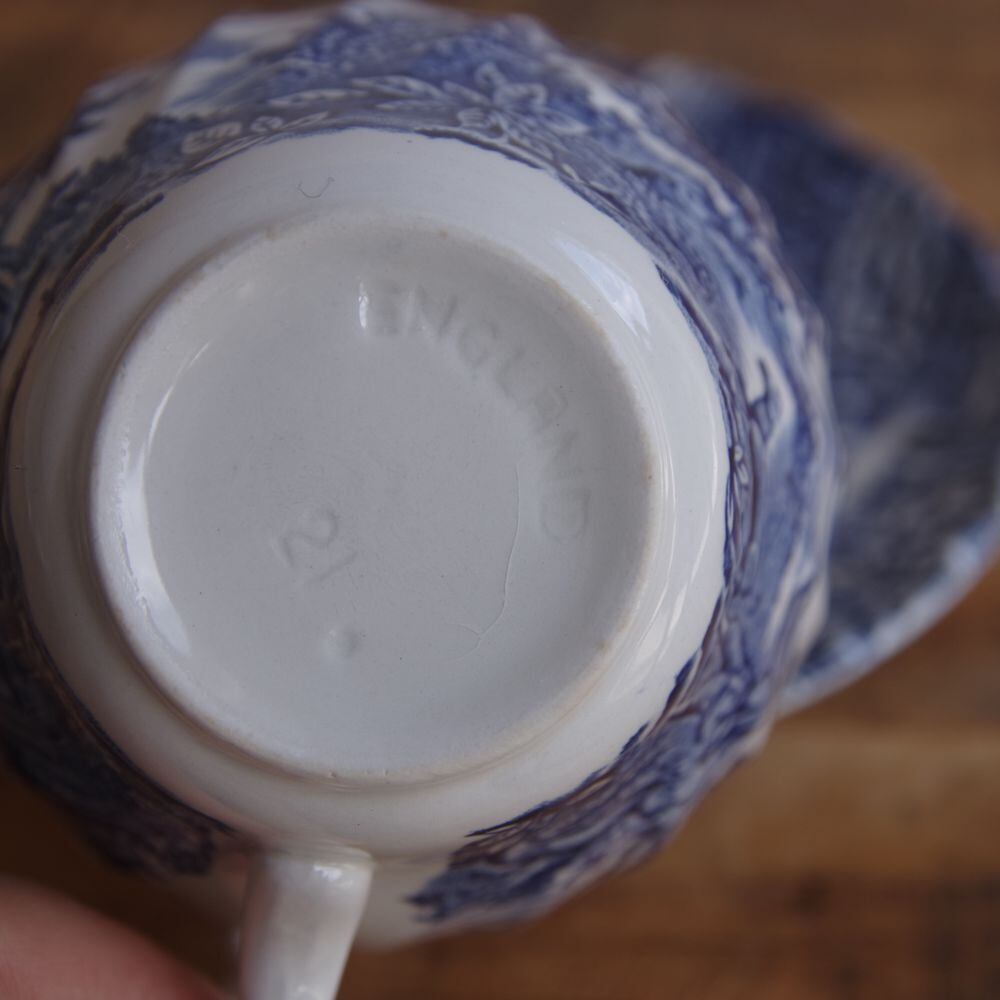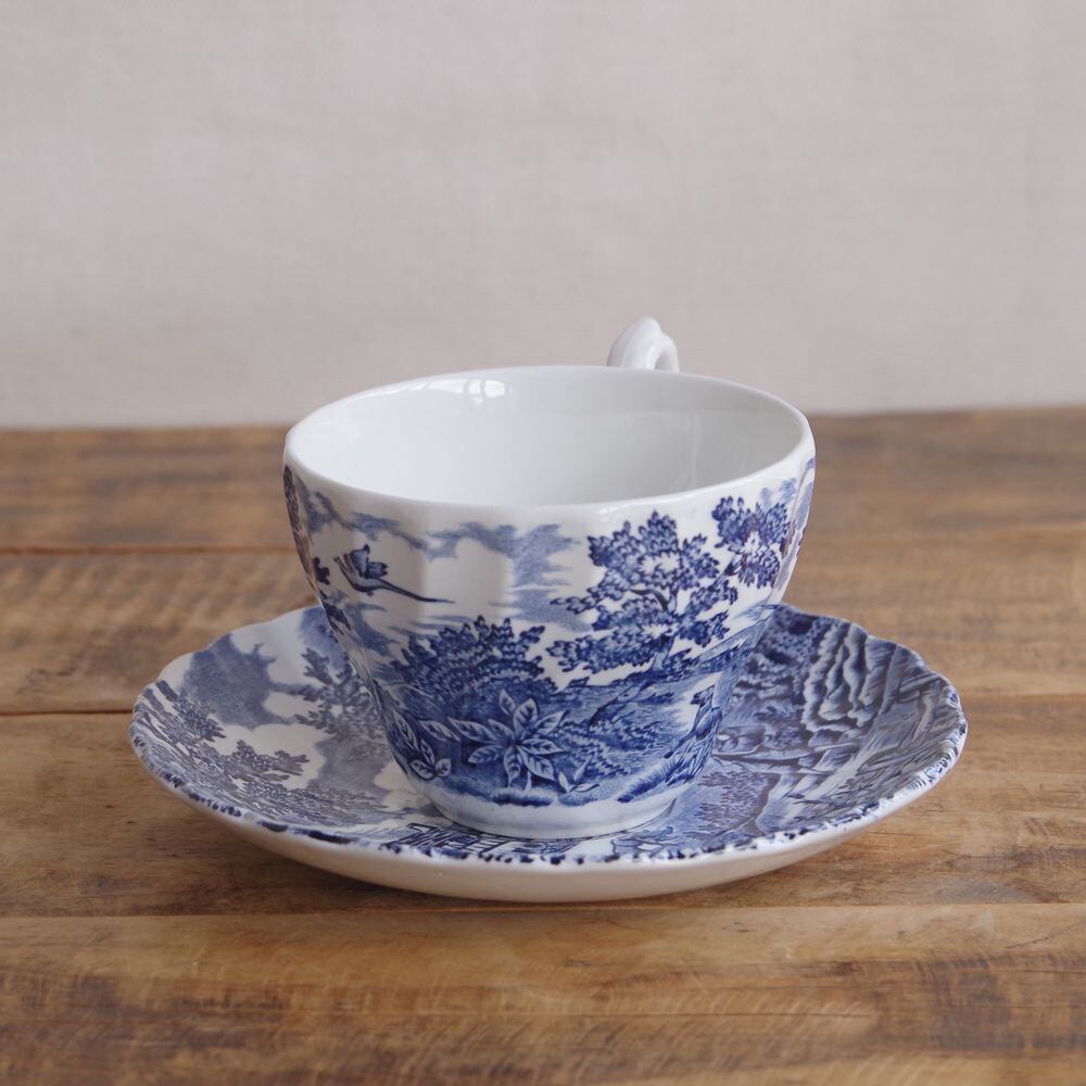 ミヨット ハンター コーヒーカップ ソーサー Myott The Hunter #240712-2 イギリス ヴィンテージ 食器 アンティーク 狩り 風景 猟犬 染付 コバルトブルー