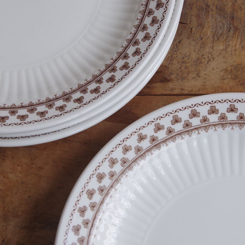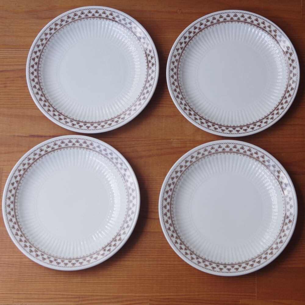アダムス シャロン ブラウン クローバー柄 デザートプレート ケーキ皿 18cm Adams Sharon #240721-1~4 レトロ ヴィンテージ 食器 陶器 イギリス製