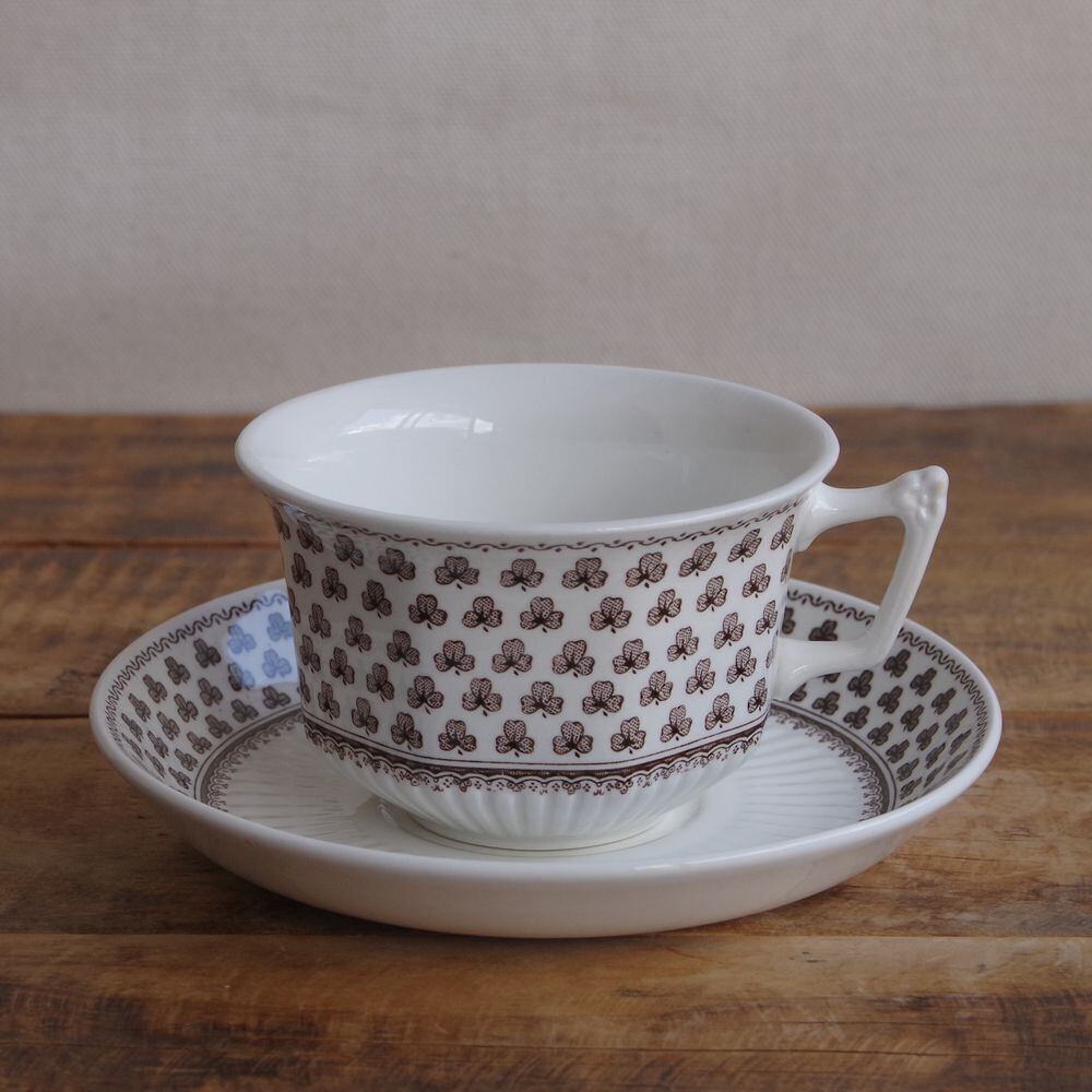 イギリス ヴィンテージ 陶器 食器 アダムス ブラウン クローバー柄 ティーカップ ソーサー シャロン Adams Sharon #240721-1 レトロ クラシカル Ironstone