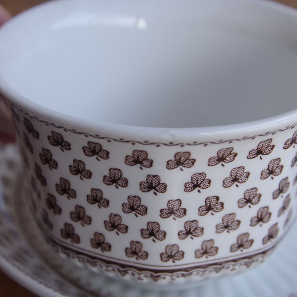 イギリス ヴィンテージ 陶器 食器 アダムス ブラウン クローバー柄 ティーカップ ソーサー シャロン Adams Sharon #240721-2 レトロ クラシカル Ironstone