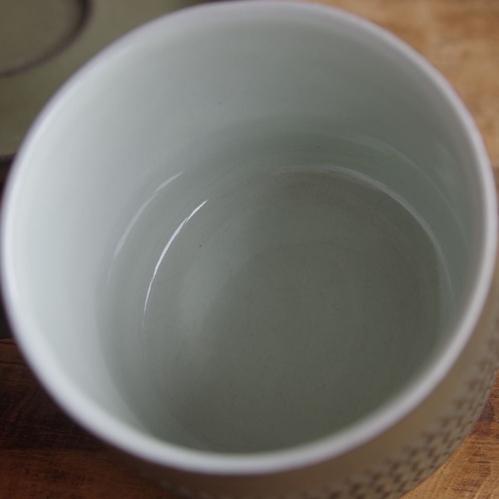 カップ内側はつるつるとしたつやのある質感で、うっすらと水色がかっています。