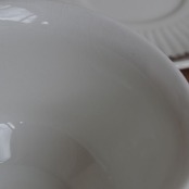 こちらのソーサーには、一点、グリーン色の絵の具汚れがあります。