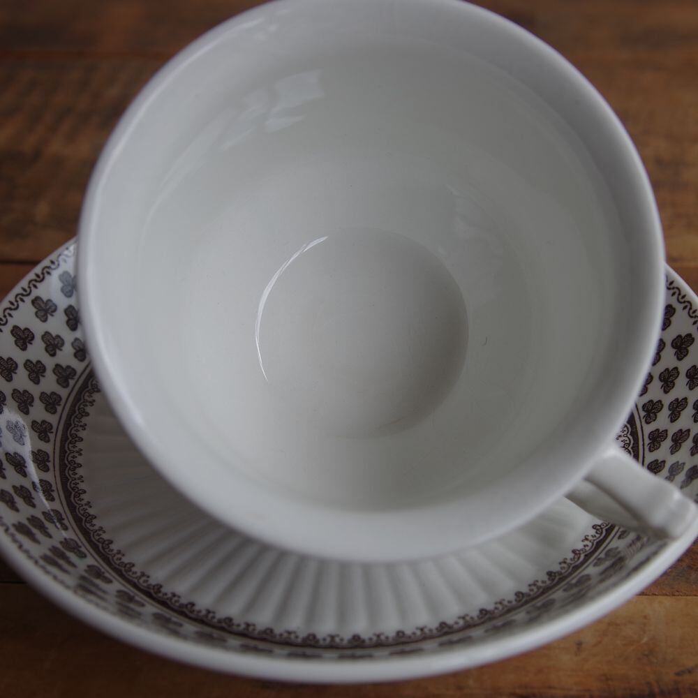 アダムス ブラウン クローバー柄 ティーカップ ソーサー シャロン Adams Sharon イギリス ヴィンテージ 陶器 食器 レトロ クラシカル Ironstone #240725-6