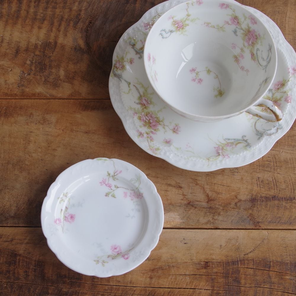 リモージュ テオドール・アビランド ピンク 花柄 バターパッド 小皿 豆皿 8cm フランス アンティーク 食器 陶器 Theodore Haviland Limoges France #240816-6