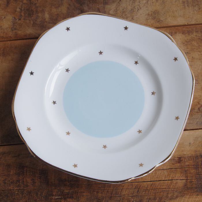 ダッチェス/ダイヤモンド スター 星柄 デザートプレート ケーキ皿 15cm Duchess Diamond China レトロ イギリス ヴィンテージ食器 #240821-10 アンティーク 陶器 雑貨 ブルー 水色 パステルカラー ゴールド